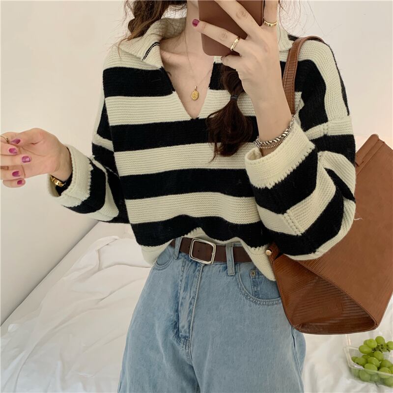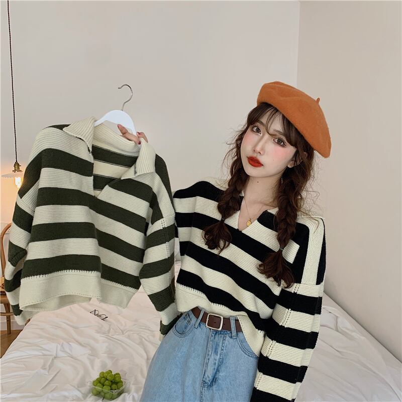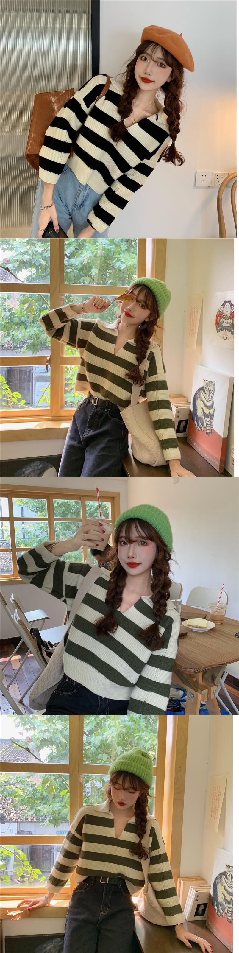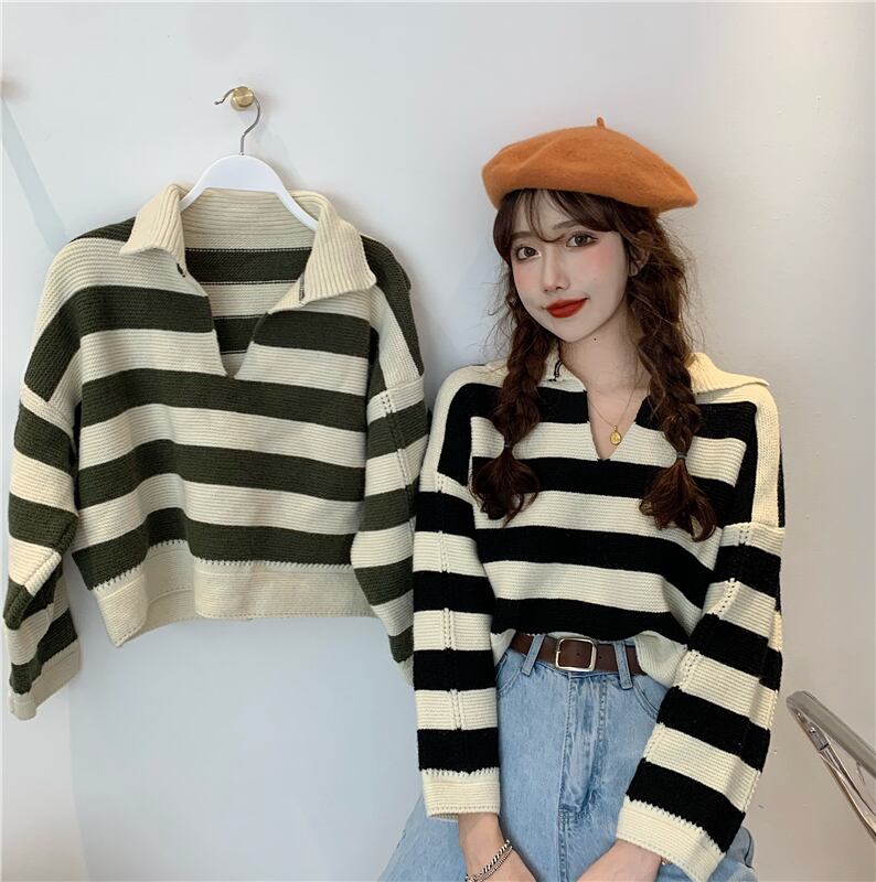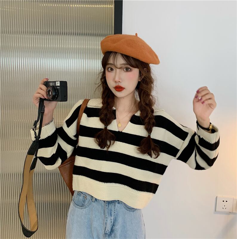 ✞ セーター 大人女子☆スタンダードストライプショートニットトップス ロング レトロ ✞ゴスロリ SM ミリ 甘ロリ クラロリ 和ロリ エレガント 黒ロリ 姫ロリ 華ロリ BB-BB15663092893