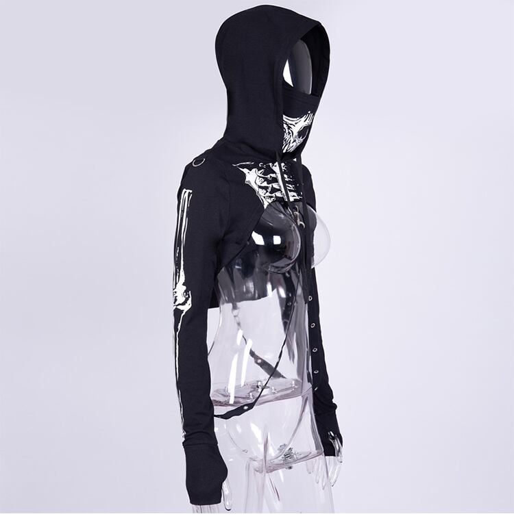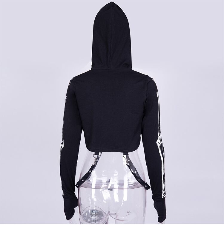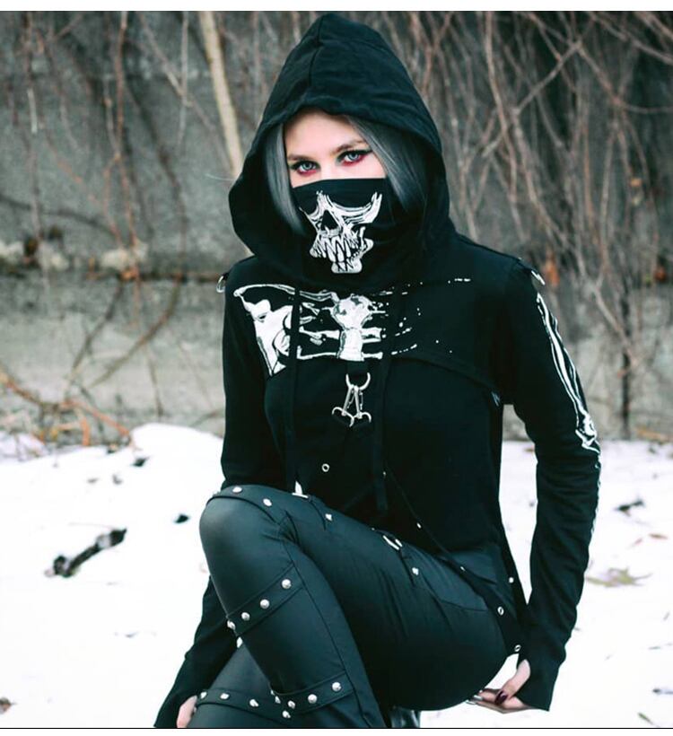 ✞✝✞ ダーク♡ショートセーター ♥カワイイ♥フードプリント柄トップス レース レースアップ ✞✝✞ ゴスロリ SM ミリ 甘ロリ クラロリ 和ロリ エレガント 黒ロリ 姫ロリ 華ロリ AA-AA3282272