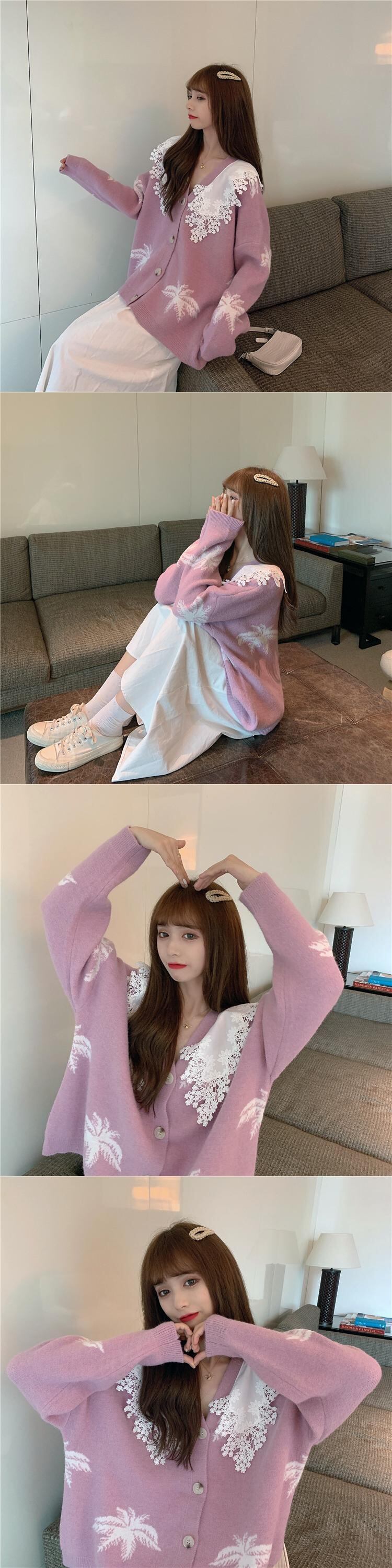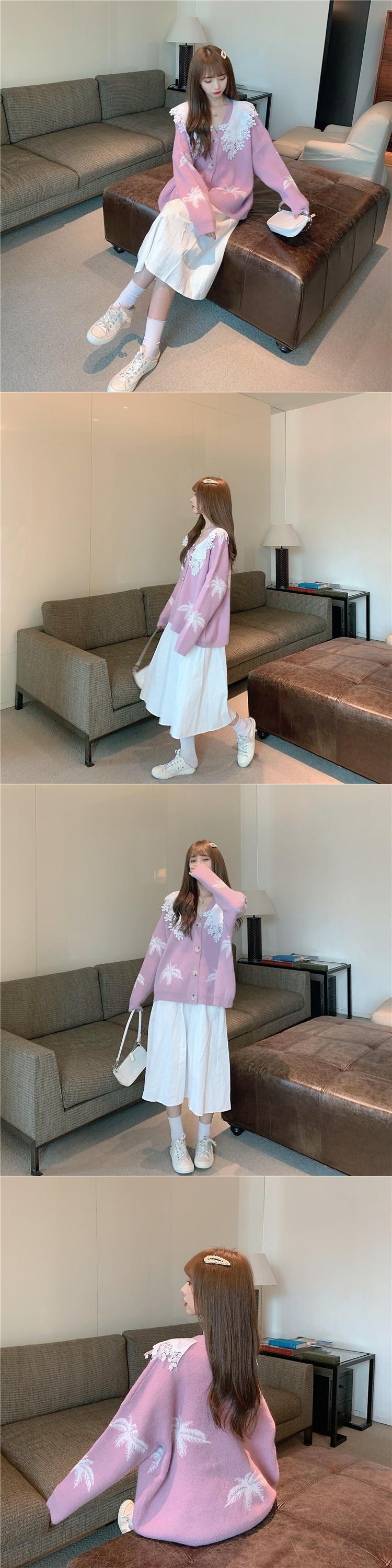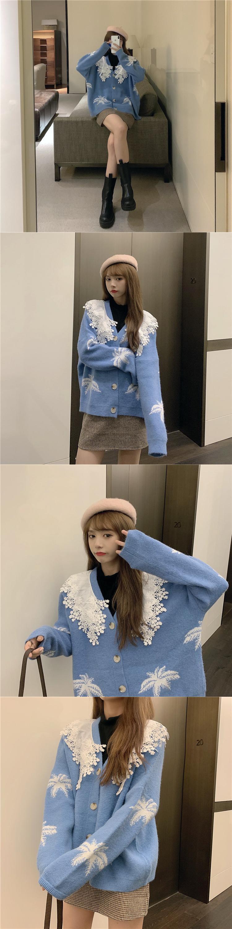 ✞ レースセーター ジャケット プリント柄長袖スリーブルーズニットカーディガン ロング スウィート ✞ゴスロリ SM ミリ 甘ロリ クラロリ 和ロリ エレガント 黒ロリ 姫ロリ 華ロリ BB-BB11020780078