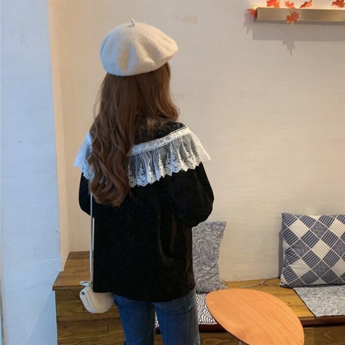 ✞ レースシャツブラウス大人女子☆ゴールドベルベットトップス ロング スウィート ✞ゴスロリ SM ミリ 甘ロリ クラロリ 和ロリ エレガント 黒ロリ 姫ロリ 華ロリ BB-BB22074883153