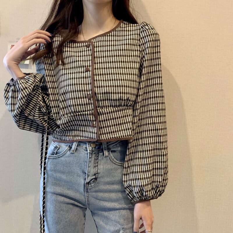 ✞ スタンダード★スリーブ長袖チェック柄シャツブラウスブラウス ロング レトロ ✞ゴスロリ SM ミリ 甘ロリ クラロリ 和ロリ エレガント 黒ロリ 姫ロリ 華ロリ BB-BB97751689500