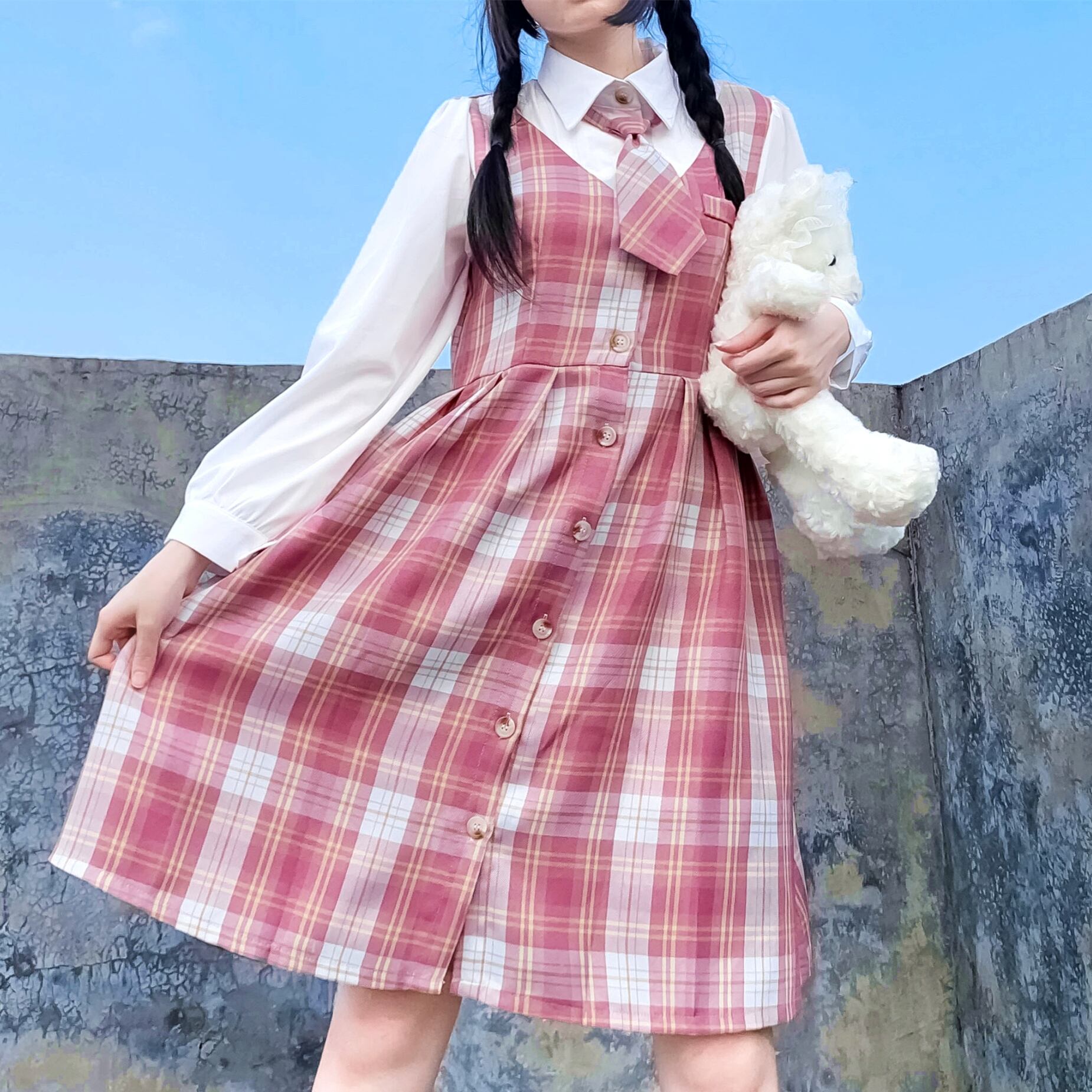 ✞チェック柄ワンピースドレスOP ランタンスリーブハイウェスト♥カワイイ♥ ロング ✞ゴスロリ SM ミリ 甘ロリ クラロリ 和ロリ エレガント 黒ロリ 姫ロリ 華ロリ BB-BB78665790417