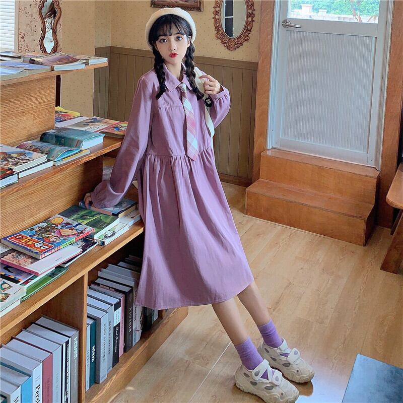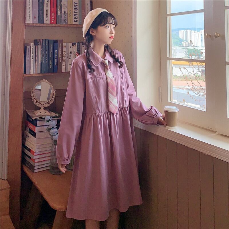 ✞シフォン襟ネクタイ付ワンピースドレスOP 制服 ロングスリーブ シャツブラウス 長袖 ✞ゴスロリ SM ミリ 甘ロリ クラロリ 和ロリ エレガント 黒ロリ 姫ロリ 華ロリ BB-BB55482815989