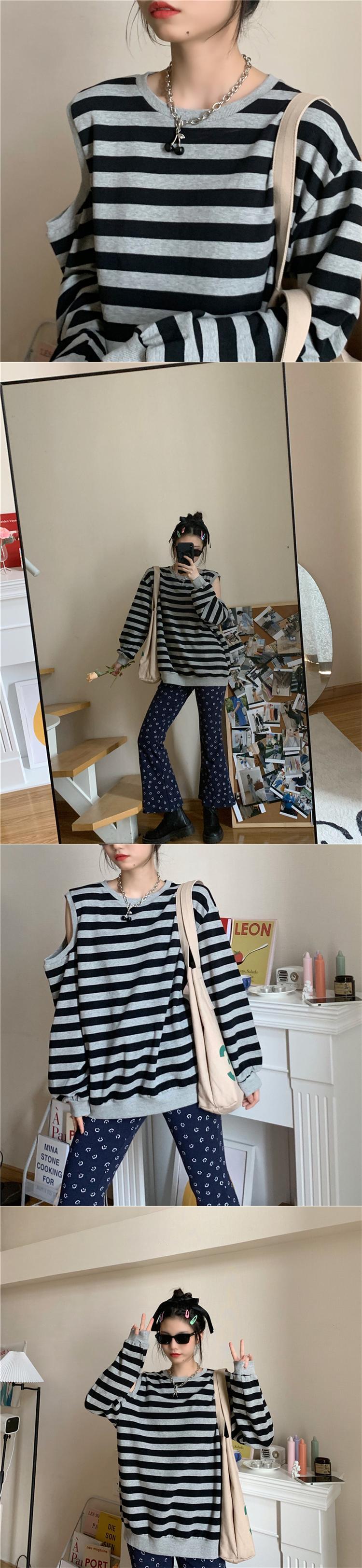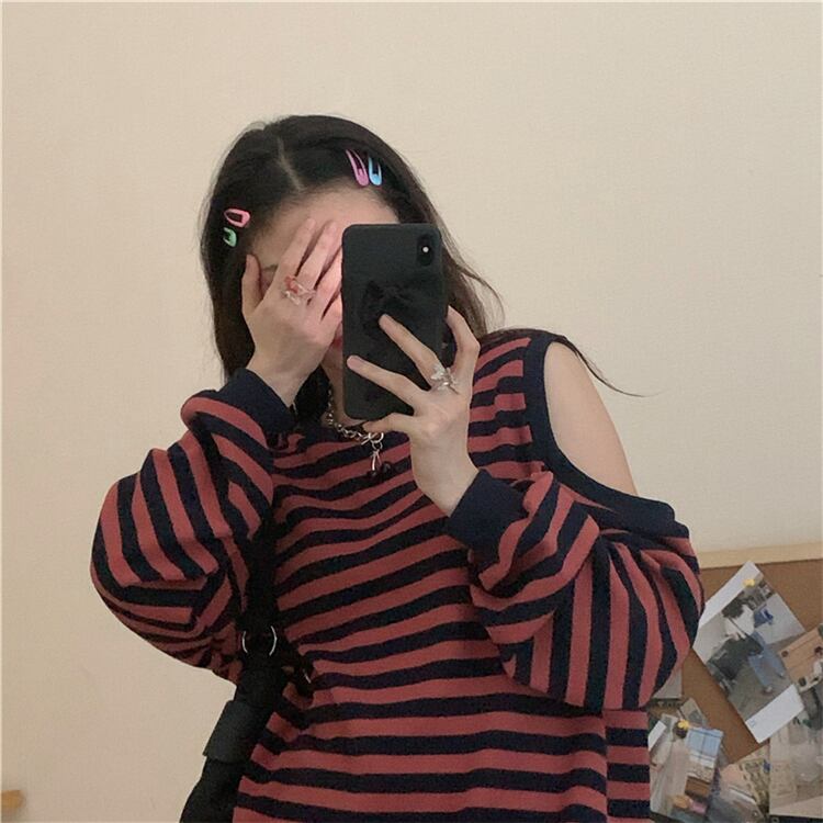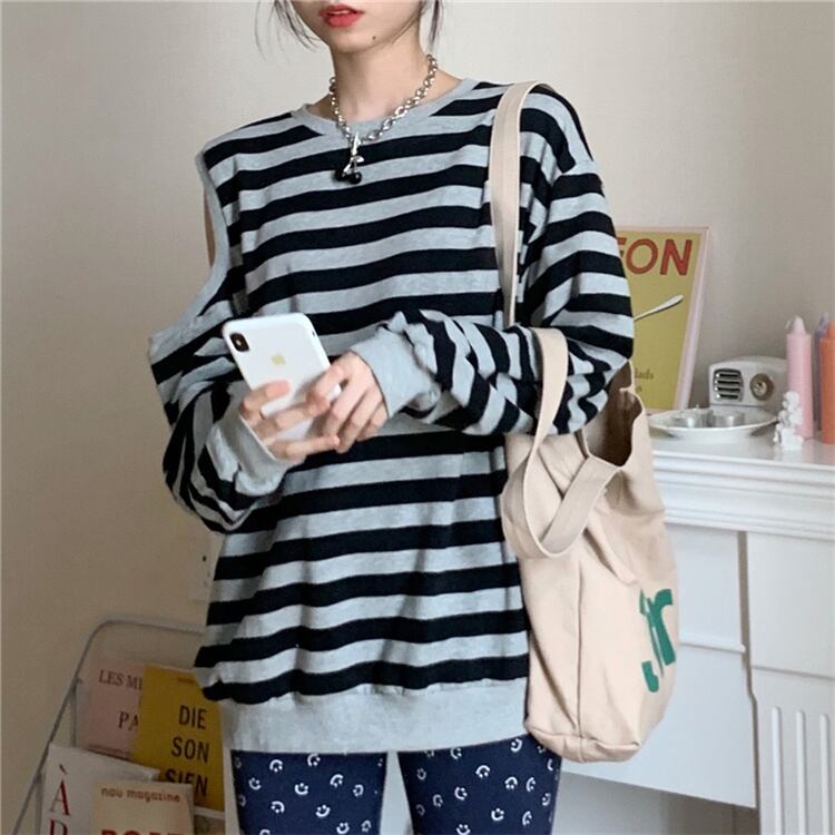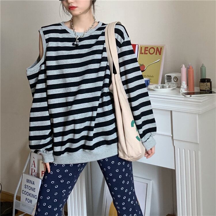 ✞ ストライプセーター 大人女子☆ラウンドネック♡プルオーバー トップス ロング オフショルダー ✞ゴスロリ SM ミリ 甘ロリ クラロリ 和ロリ エレガント 黒ロリ 姫ロリ 華ロリ BB-BB94178830245