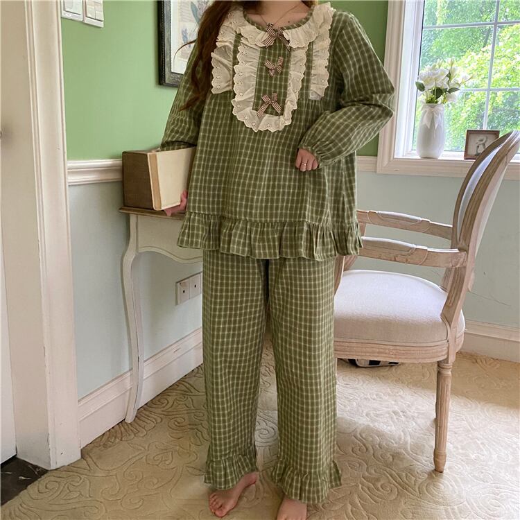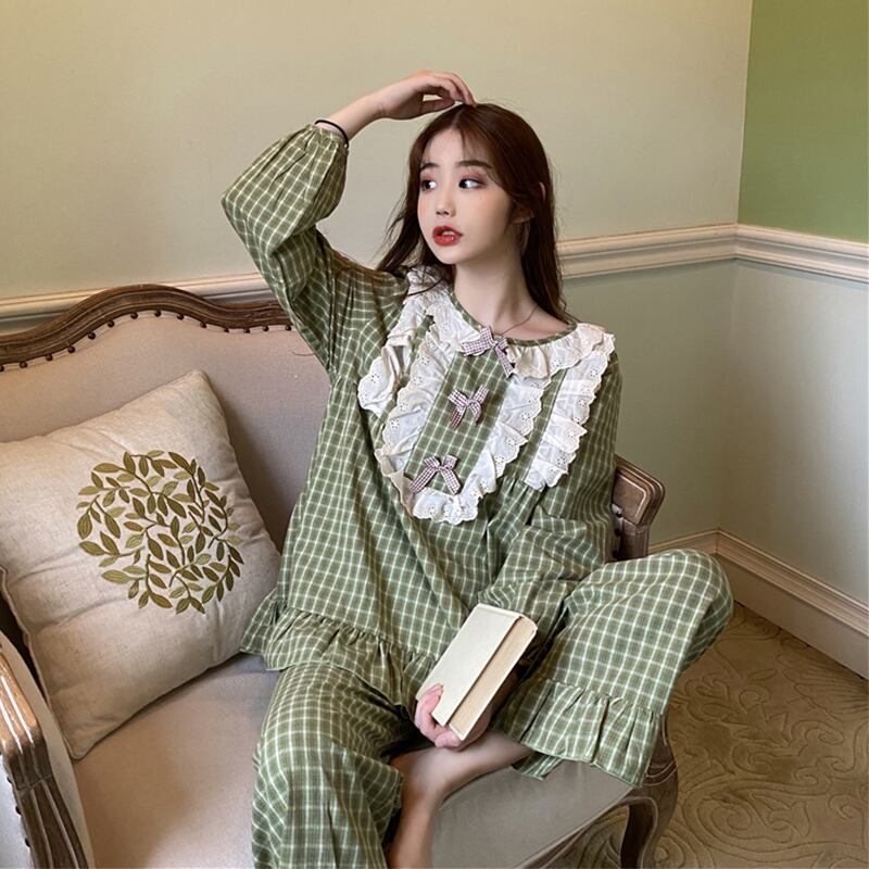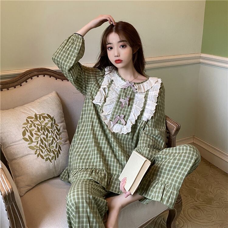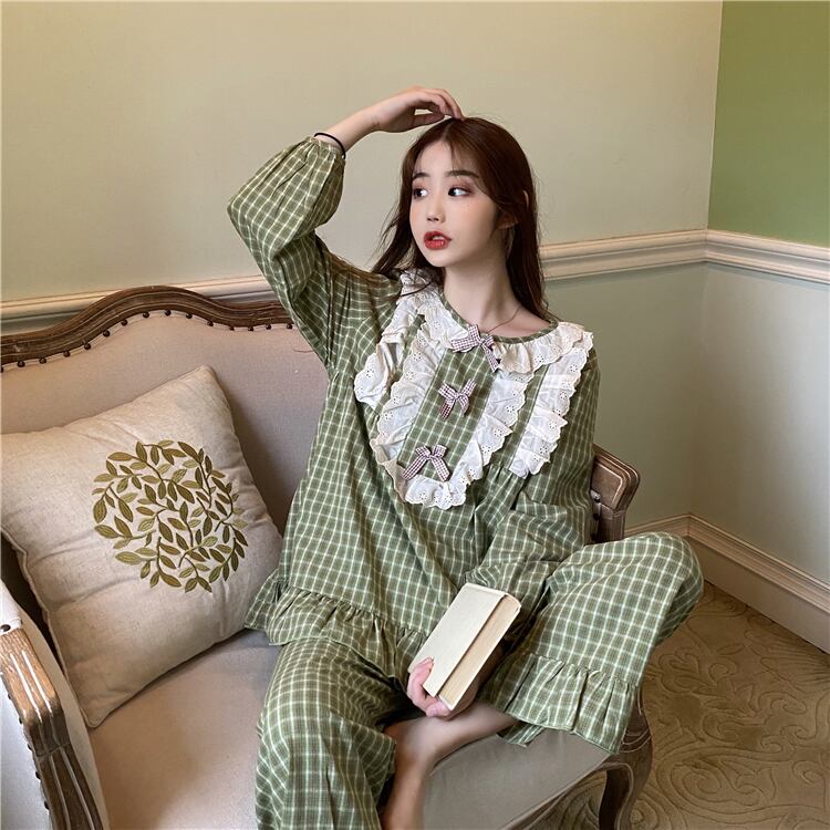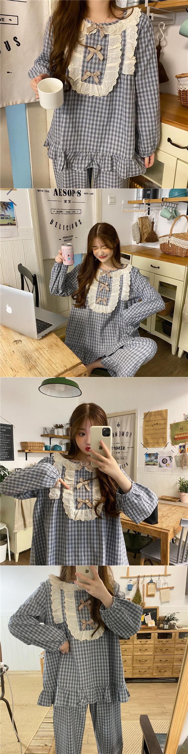 ✞ ♡レースラウンドネックカジュアルチェック柄 ロング スウィート ✞ゴスロリ SM ミリ 甘ロリ クラロリ 和ロリ エレガント 黒ロリ 姫ロリ 華ロリ BB-BB21052317293