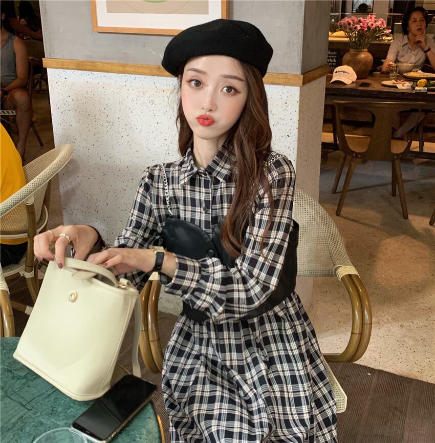 色:黒チェック柄ワンピース,コーヒーカラーチェック柄ワンピース,ブラックベストワンピース,コーヒーカラーベストワンピース