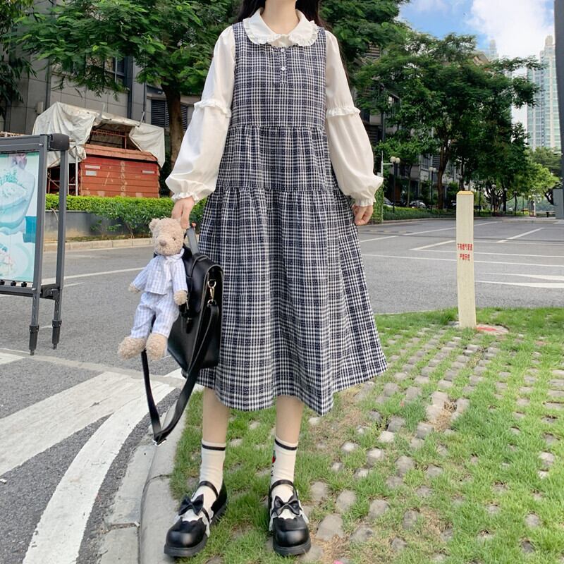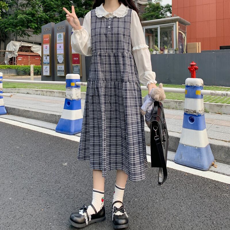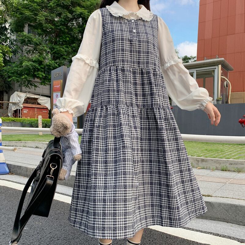 色:シャツワンピース,格子縞のスカートワンピース