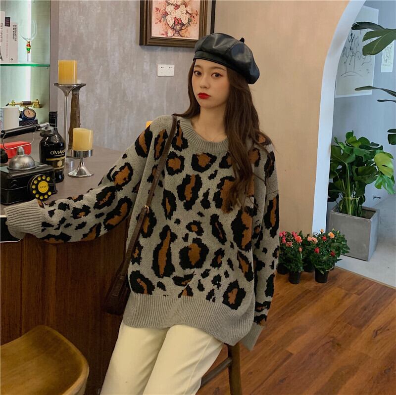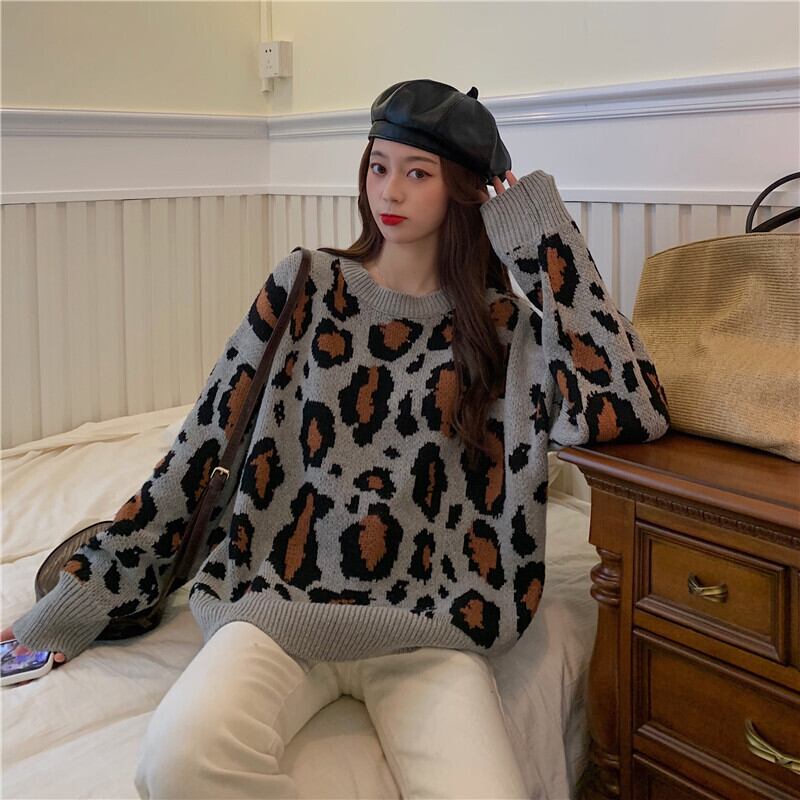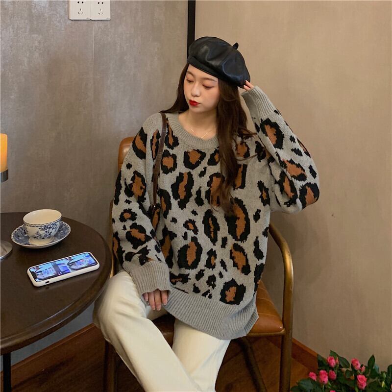 ✞ スタンダードレオパードジャカードニットセーター カジュアルプルオーバー ブラウス 大人女子☆ ロング レトロ ✞ゴスロリ SM ミリ 甘ロリ クラロリ 和ロリ エレガント 黒ロリ 姫ロリ 華ロリ BB-BB28071664854
