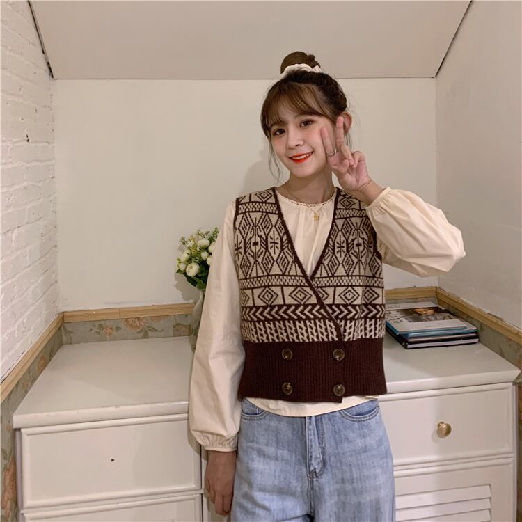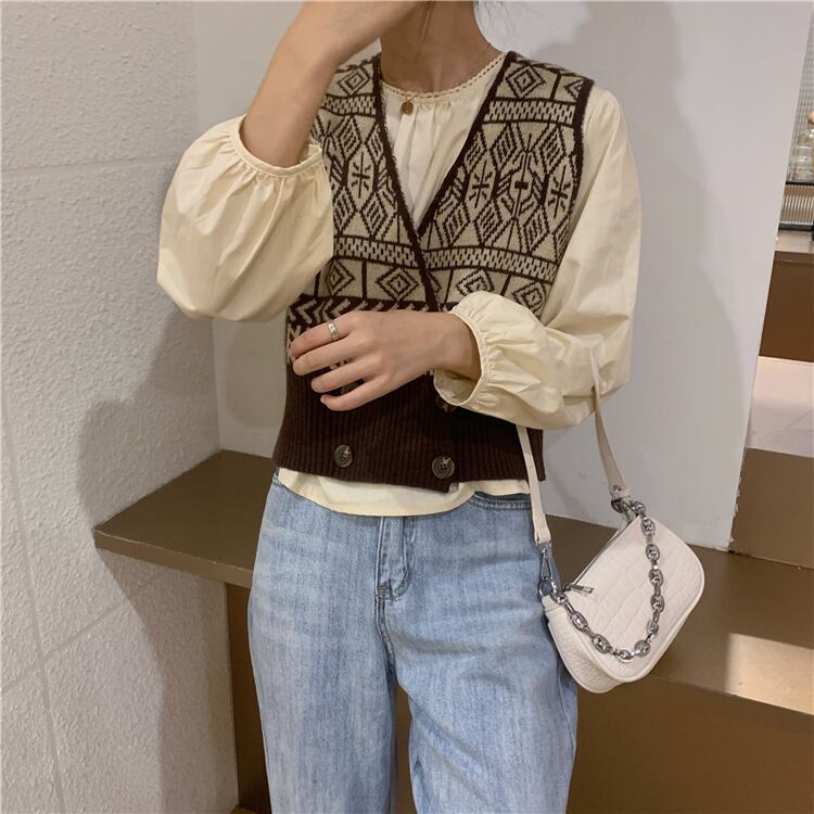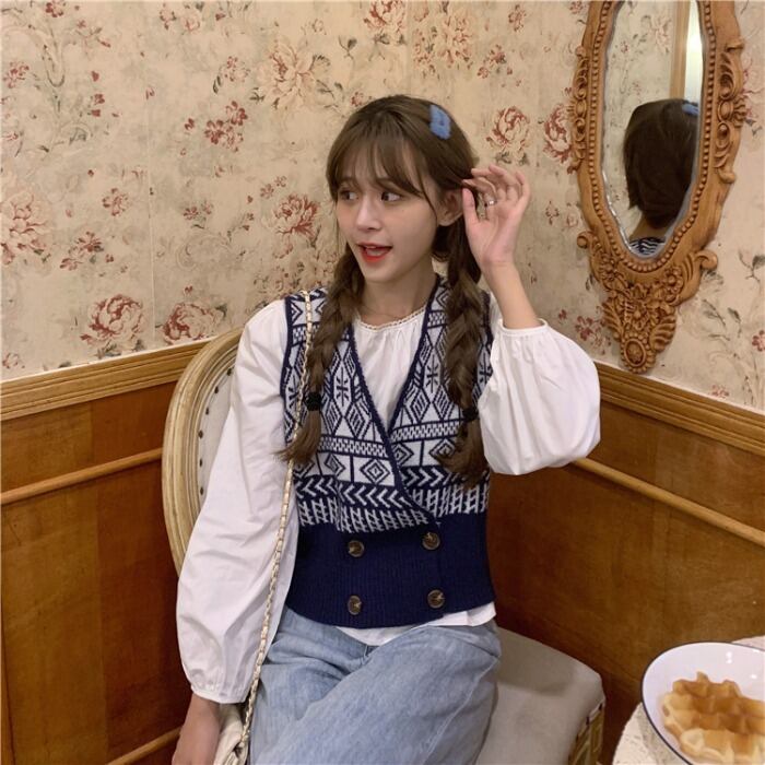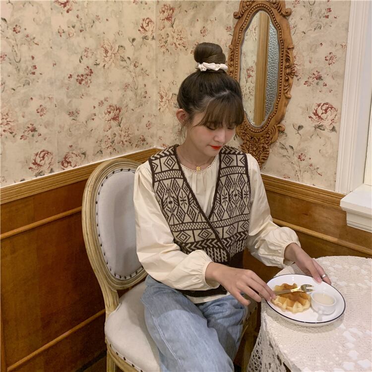 ✞ スタンダードVネックショートニットカラースリーブ長袖シャツブラウス ロング ランタンスリーブ レトロ ピュア ✞ゴスロリ SM ミリ 甘ロリ クラロリ 和ロリ エレガント 黒ロリ 姫ロリ 華ロリ BB-BB85953025110