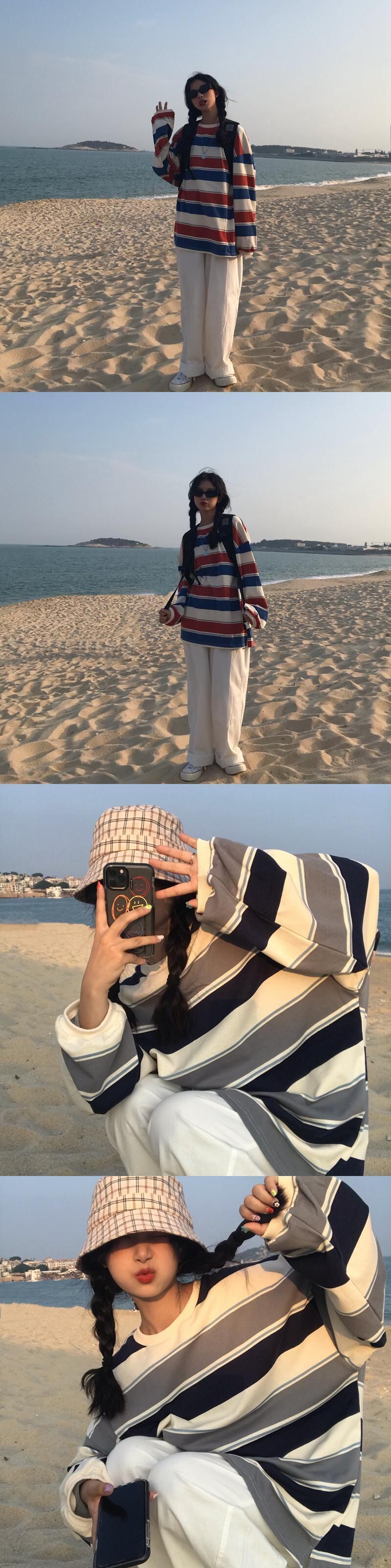 ✞ ストライプトップス ラウンドネックプルオーバー カジュアルセーター 大人女子☆ ロング ✞ゴスロリ SM ミリ 甘ロリ クラロリ 和ロリ エレガント 黒ロリ 姫ロリ 華ロリ BB-BB17473846204