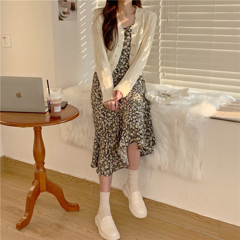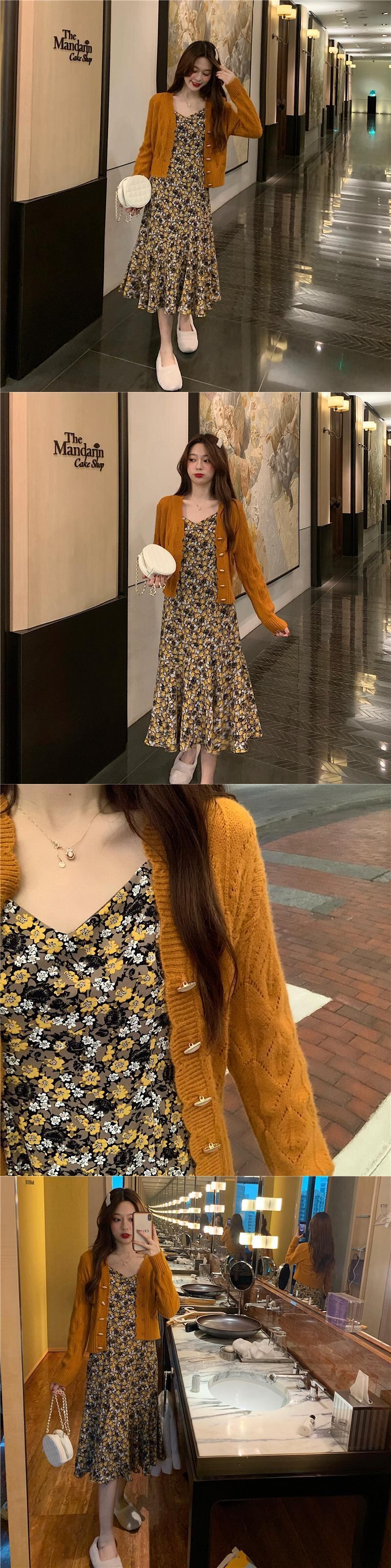 色:オレンジフラワースリングスカートワンピース,緑の花ワンピース,オレンジ色のセーターシングル,白いセーターワンピース