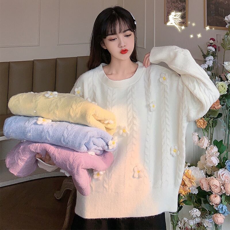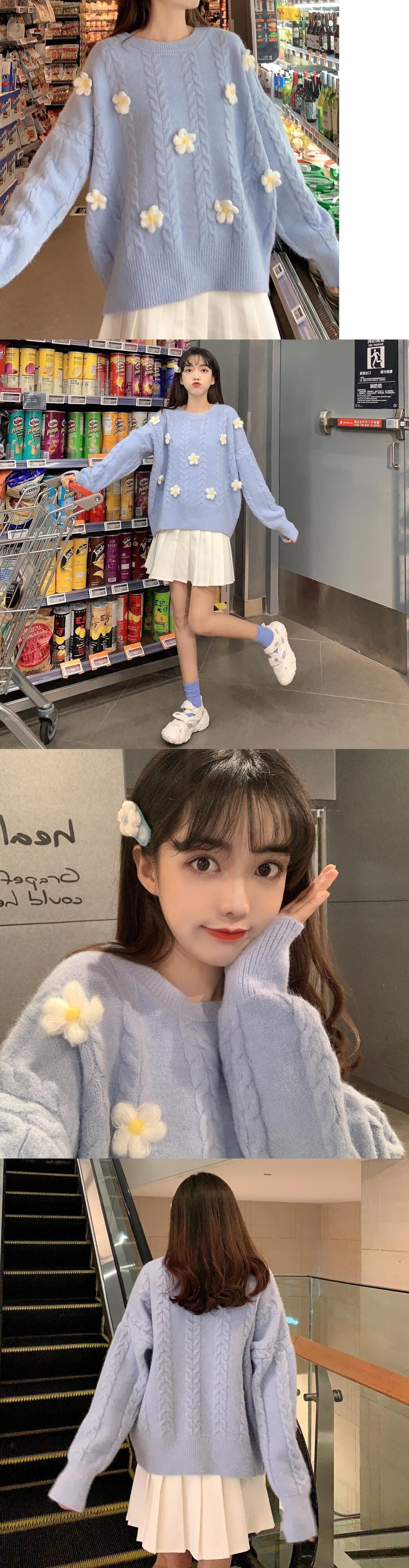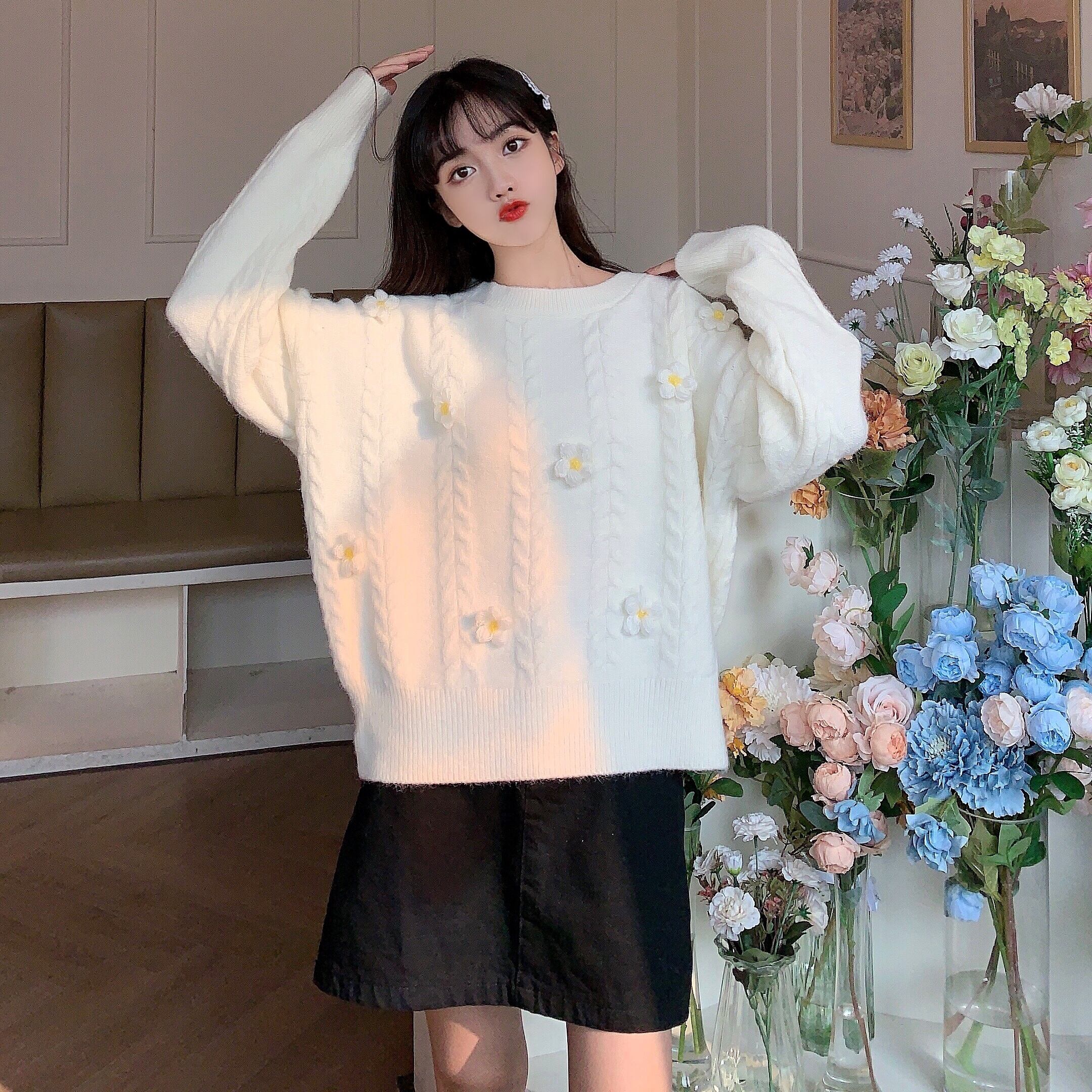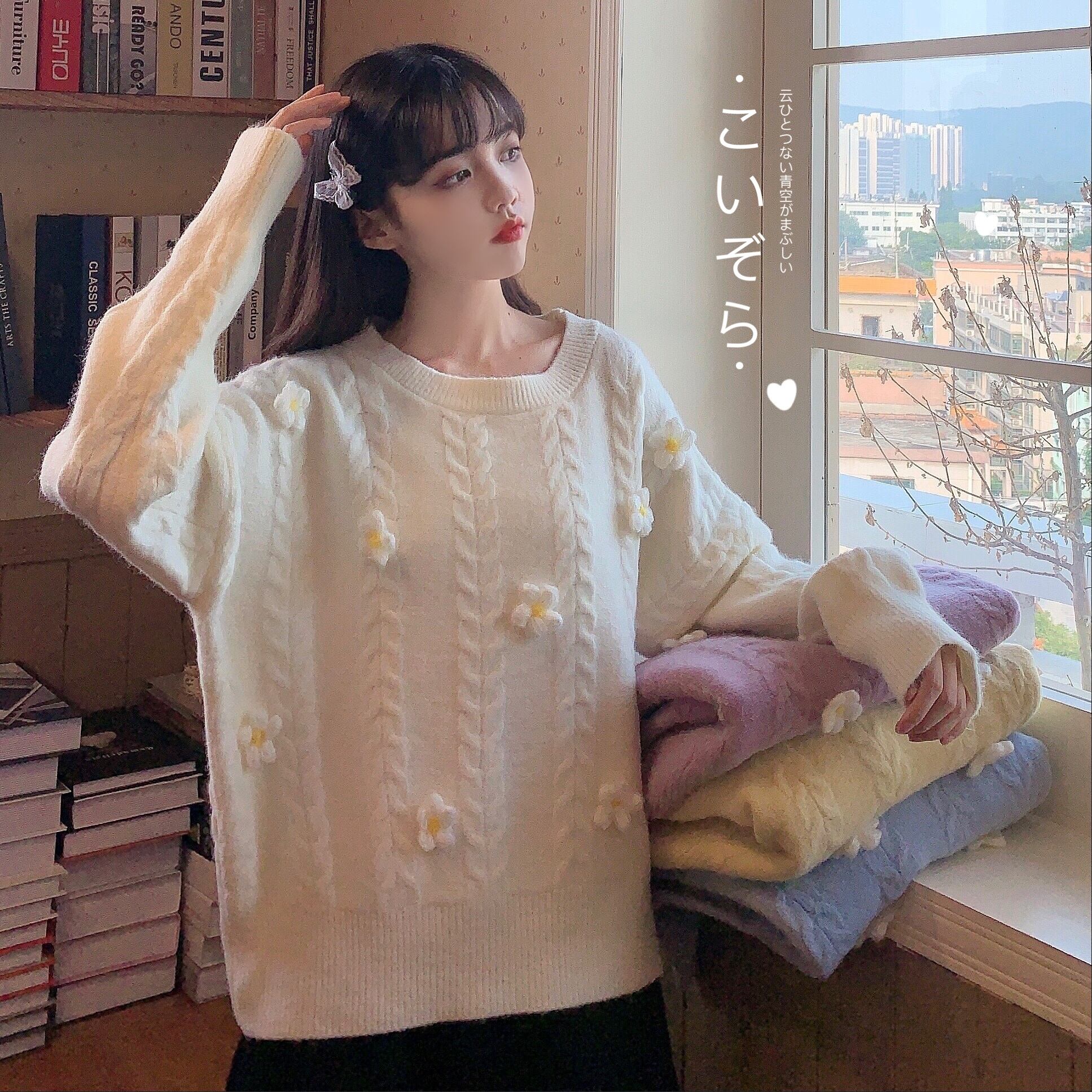 ✞花びらエンボスステッチニットセーター ラウンドネック 大人女子☆ ロング レトロ スウィート フラワーデザイン✞ゴスロリ SM ミリ 甘ロリ クラロリ 和ロリ エレガント 黒ロリ 姫ロリ 華ロリ BB-BB53322134360
