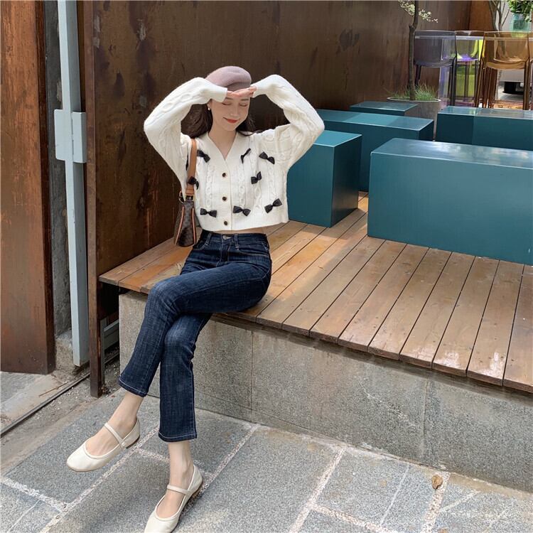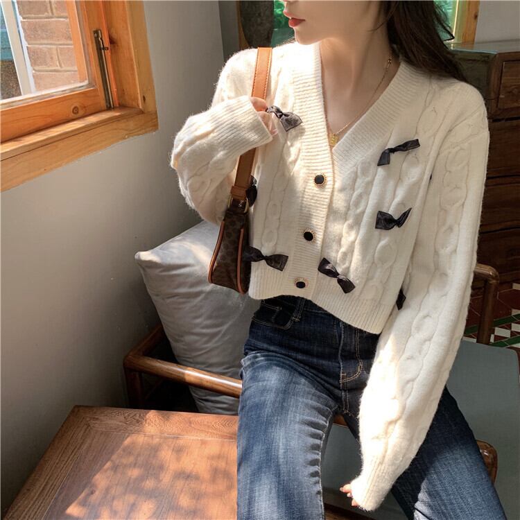 ✞ Vネックニットカーディガンジャケット ロング リボン スウィート ✞ゴスロリ SM ミリ 甘ロリ クラロリ 和ロリ エレガント 黒ロリ 姫ロリ 華ロリ BB-BB2419974908