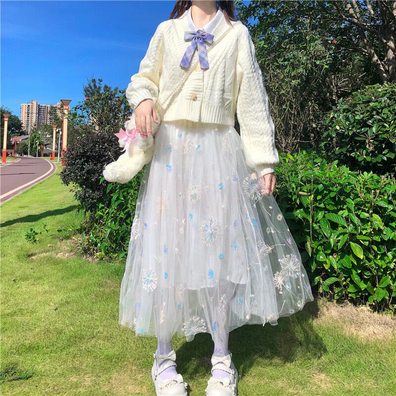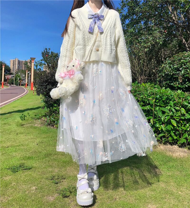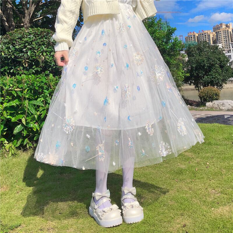 ✞甘めロリィータスパンコール刺繍メッシュチュールスカート ✞ゴスロリ SM ミリ 甘ロリ クラロリ 和ロリ エレガント 黒ロリ 姫ロリ 華ロリ BB-BB19023899276