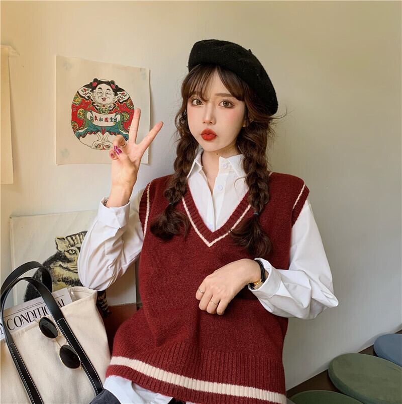 ✞ セーター 大人女子☆カラーストライプVネックノースリーブプルオーバー ニット ✞ゴスロリ SM ミリ 甘ロリ クラロリ 和ロリ エレガント 黒ロリ 姫ロリ 華ロリ BB-BB86485914700