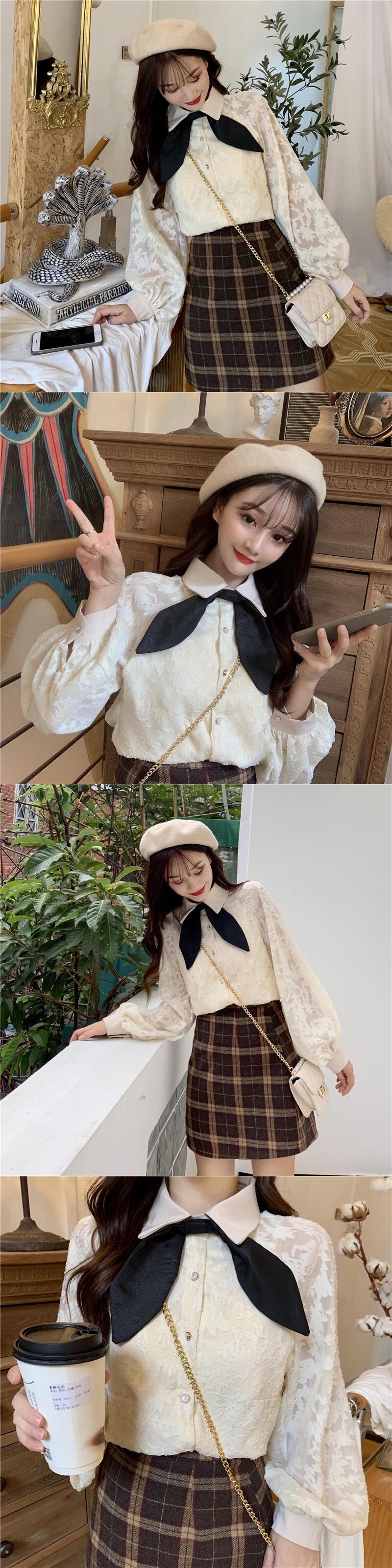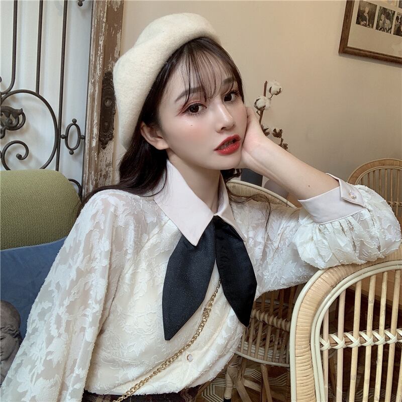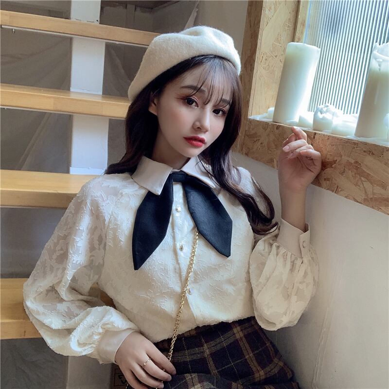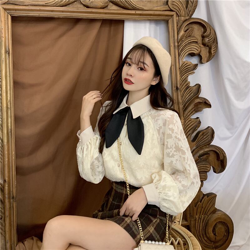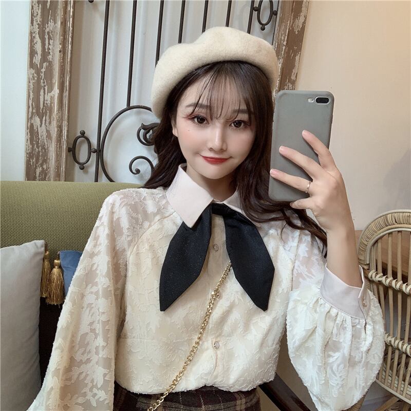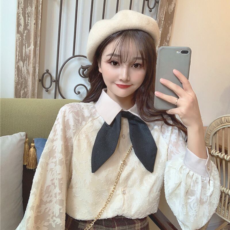 ✞ロリータランタンスリーブチュールシフォンブラウス ロング袖 スウィート オータム りぼん 秋冬 ✞ゴスロリ SM ミリ 甘ロリ クラロリ 和ロリ エレガント 黒ロリ 姫ロリ 華ロリ BB-BB39099522602