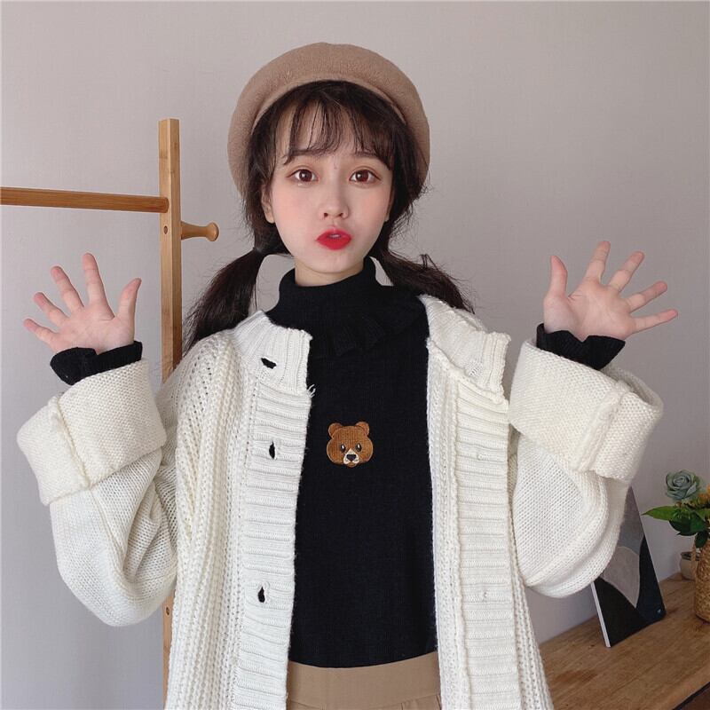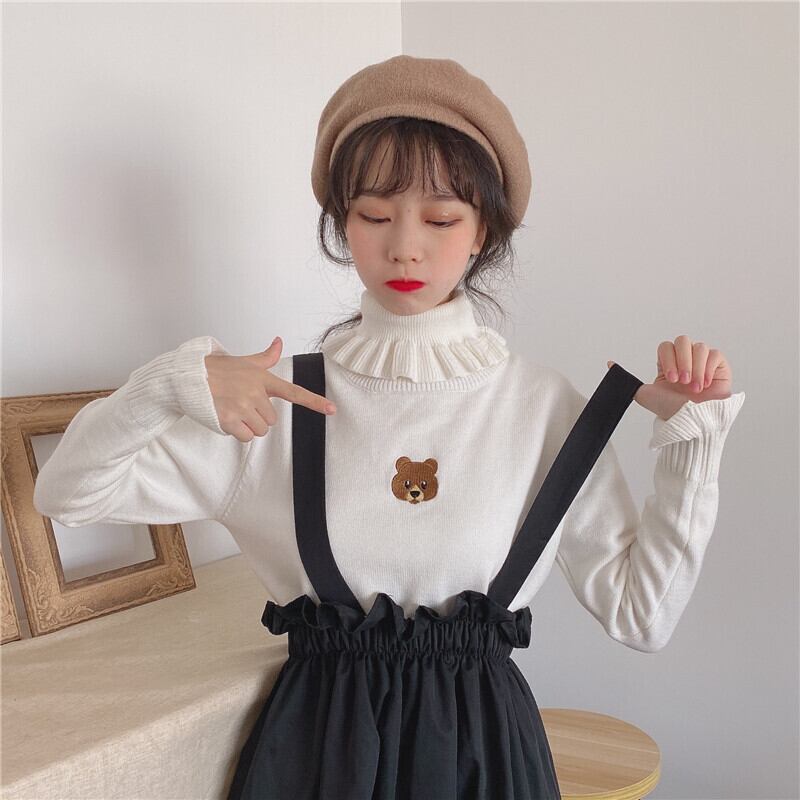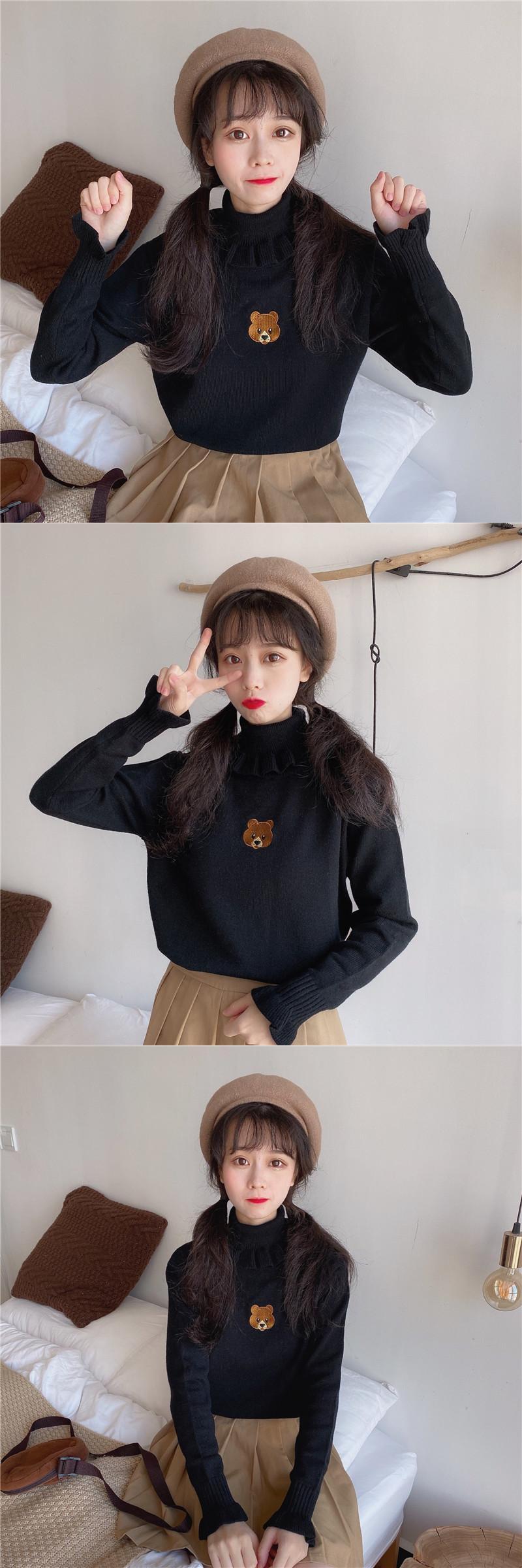 ✞甘めベア刺繍ニットベルスリーブフリルセーター ハイネック タートルネック 大人女子☆ スウィート ✞ゴスロリ SM ミリ 甘ロリ クラロリ 和ロリ エレガント 黒ロリ 姫ロリ 華ロリ BB-BB22727338069