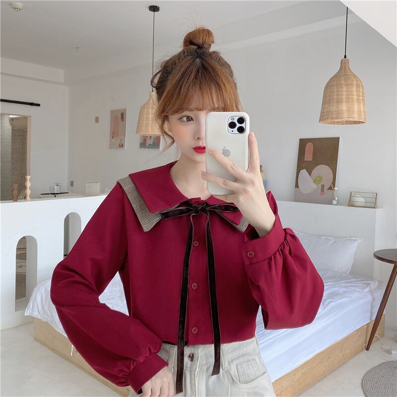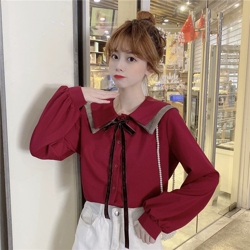 ✞ ♡シャツブラウスリボン ロング スウィート ガーリー ✞ゴスロリ SM ミリ 甘ロリ クラロリ 和ロリ エレガント 黒ロリ 姫ロリ 華ロリ BB-BB81951583038