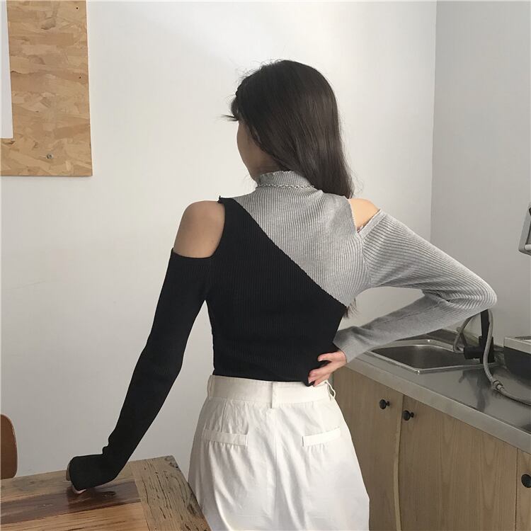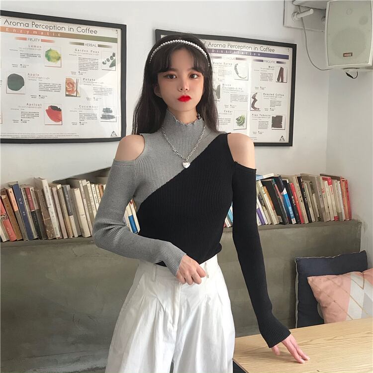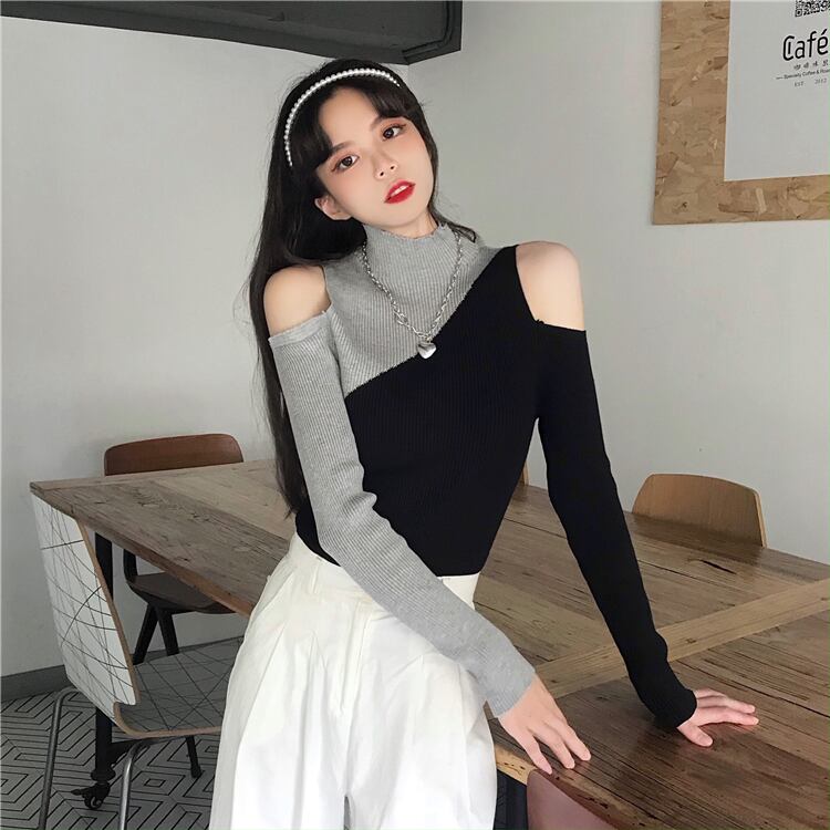 ✞ ♡カラーニットシャツブラウススリムブラウス ロング オフショルダー ✞ゴスロリ SM ミリ 甘ロリ クラロリ 和ロリ エレガント 黒ロリ 姫ロリ 華ロリ BB-BB17170237139