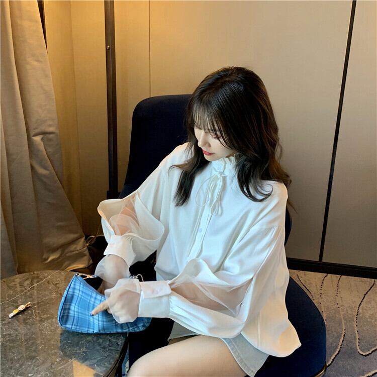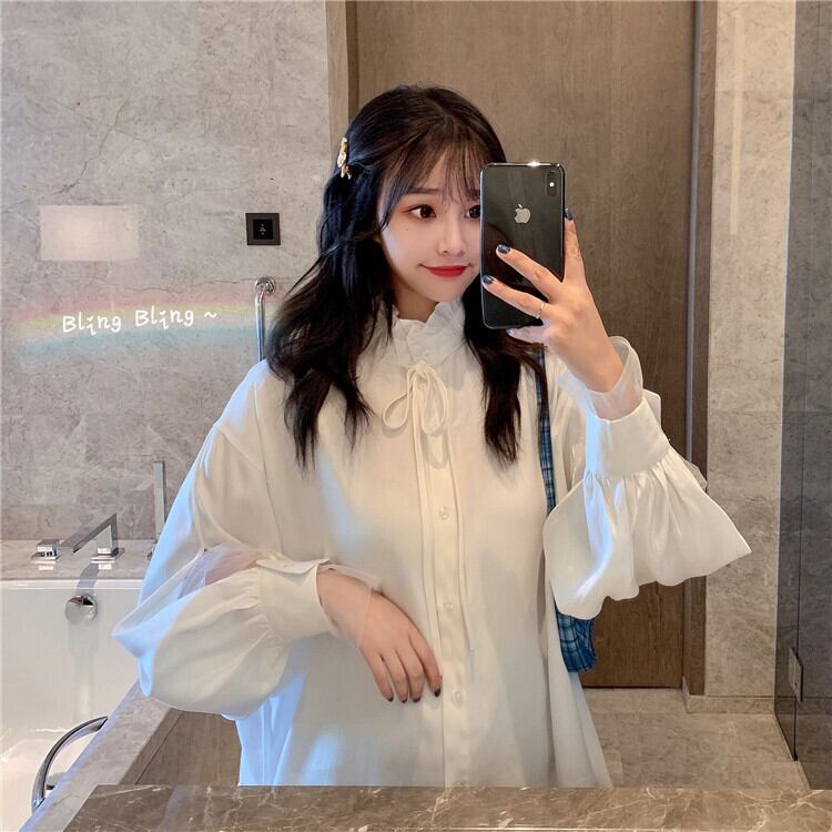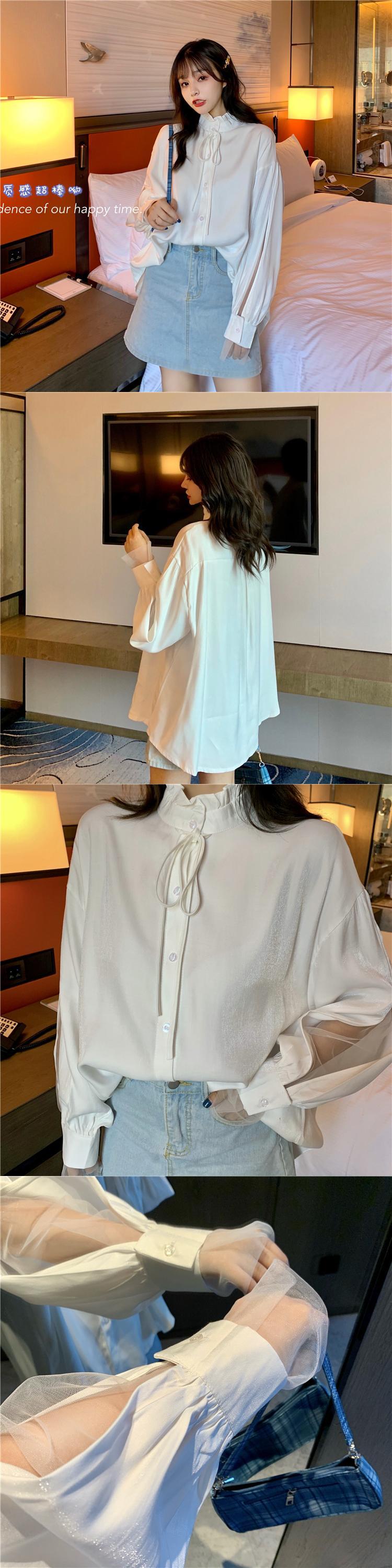 ✞ シャツブラウスメッシュ ランタンスリーブ スウィート パール 真珠 ステッチ ✞ゴスロリ SM ミリ 甘ロリ クラロリ 和ロリ エレガント 黒ロリ 姫ロリ 華ロリ BB-BB52081323023