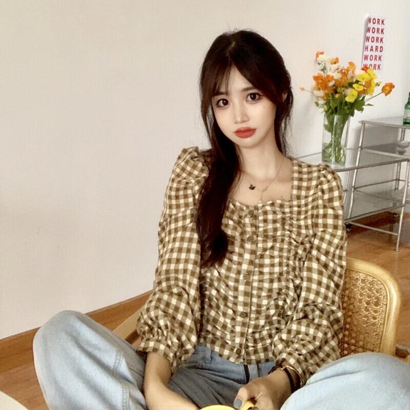 ✞ スタンダードチェック柄シャツブラウス大人女子☆♥カワイイ♥スリーブ長袖 ロング レトロ スクウェア ✞ゴスロリ SM ミリ 甘ロリ クラロリ 和ロリ エレガント 黒ロリ 姫ロリ 華ロリ BB-BB34621740469