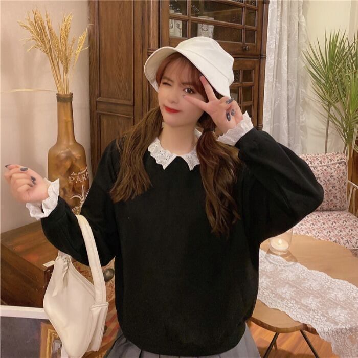 ✞ オータムレースラウンドネックセーター トップス ロング スウィート 秋物 ✞ゴスロリ SM ミリ 甘ロリ クラロリ 和ロリ エレガント 黒ロリ 姫ロリ 華ロリ BB-BB62239910790