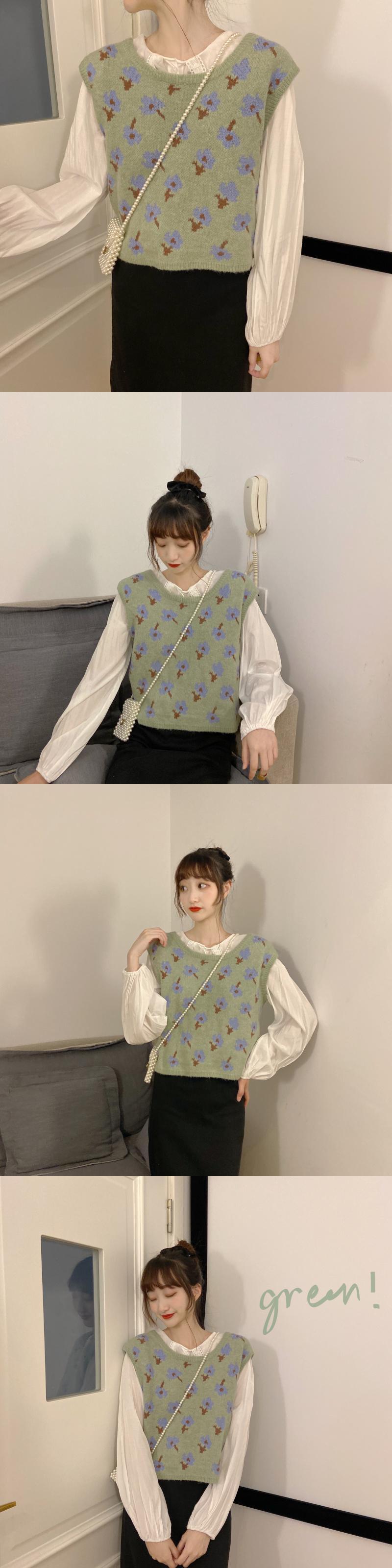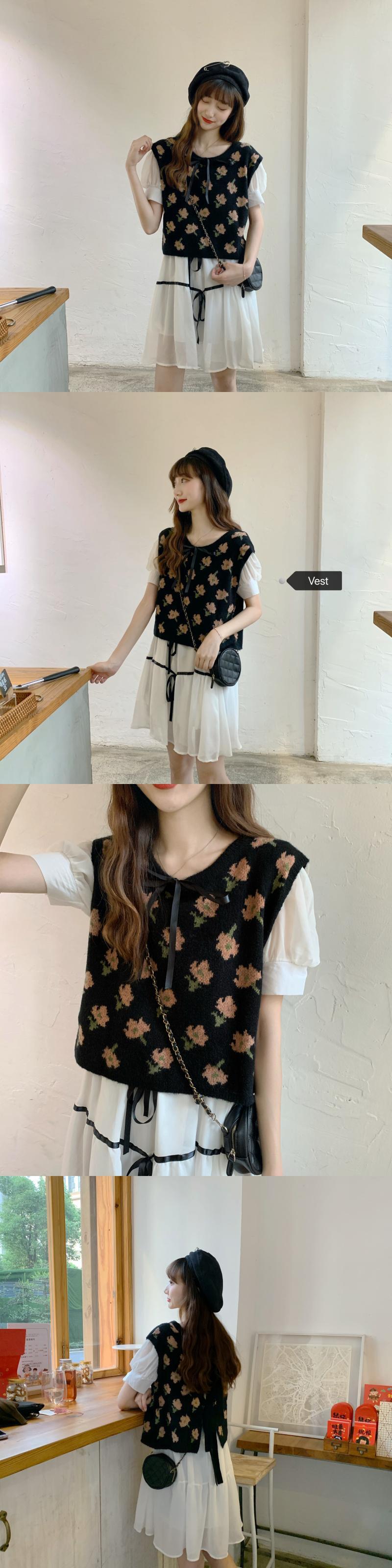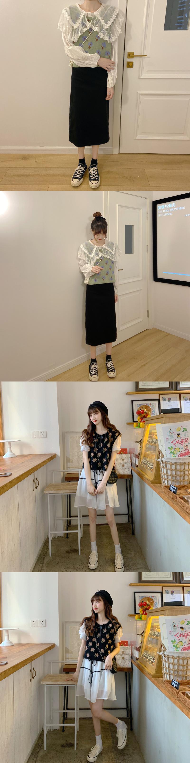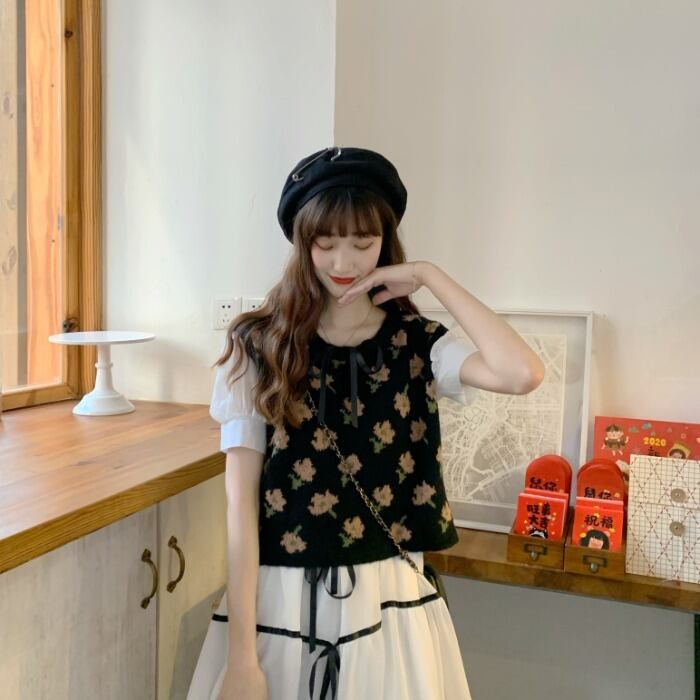 ✞ オータムスタンダード花柄ニット大人女子☆ショートラウンドネックノースリーブトップス レトロ 秋物 ✞ゴスロリ SM ミリ 甘ロリ クラロリ 和ロリ エレガント 黒ロリ 姫ロリ 華ロリ BB-BB46282432254