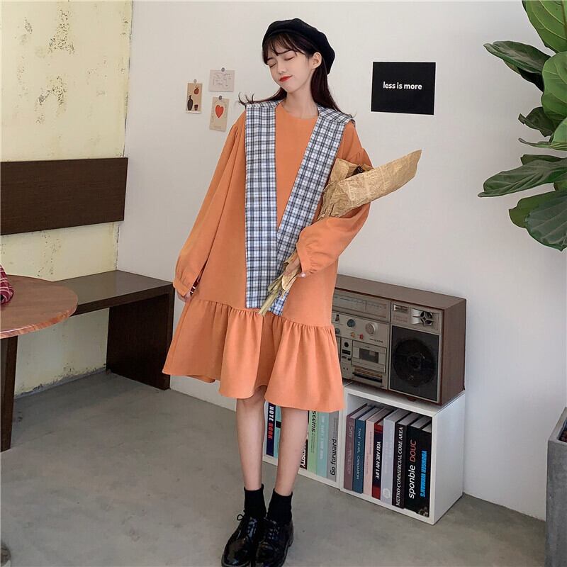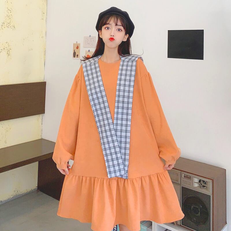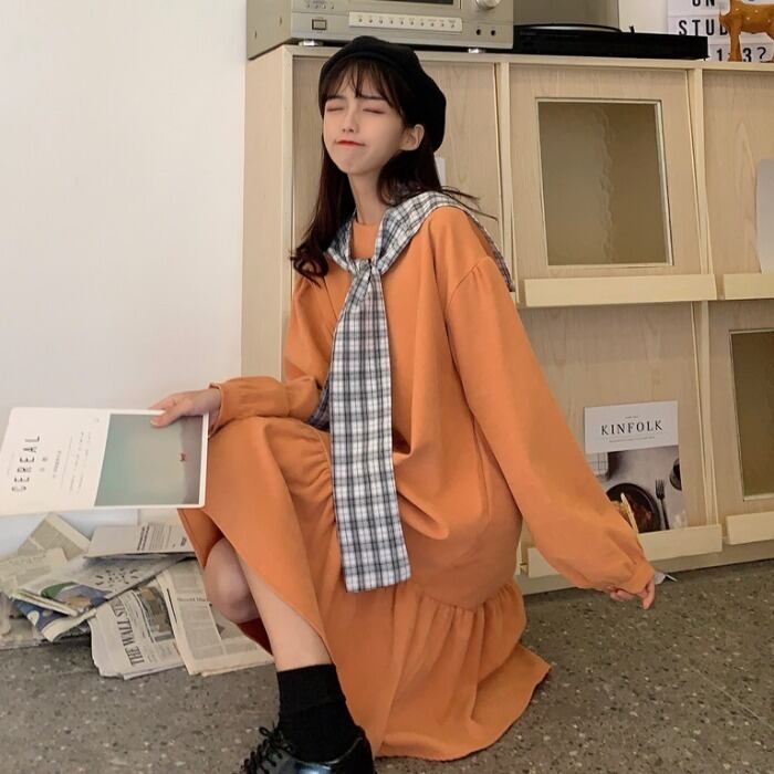 ✞ ラウンドネック♥カワイイ♥ソリッド カラースリーブ長袖チェック柄 ロング ソリッドカラー ✞ゴスロリ SM ミリ 甘ロリ クラロリ 和ロリ エレガント 黒ロリ 姫ロリ 華ロリ BB-BB63404882995