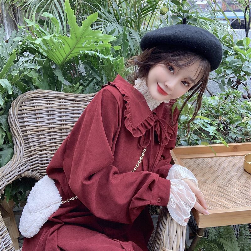 ✞ コーデュロイレッド ロング レース スウィート ガーリー レースアップ ✞ゴスロリ SM ミリ 甘ロリ クラロリ 和ロリ エレガント 黒ロリ 姫ロリ 華ロリ BB-BB58962567438
