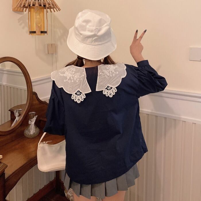 ✞ スタンダードレースシャツブラウススリーブ長袖 ロング ランタンスリーブ レトロ ✞ゴスロリ SM ミリ 甘ロリ クラロリ 和ロリ エレガント 黒ロリ 姫ロリ 華ロリ BB-BB5201985670