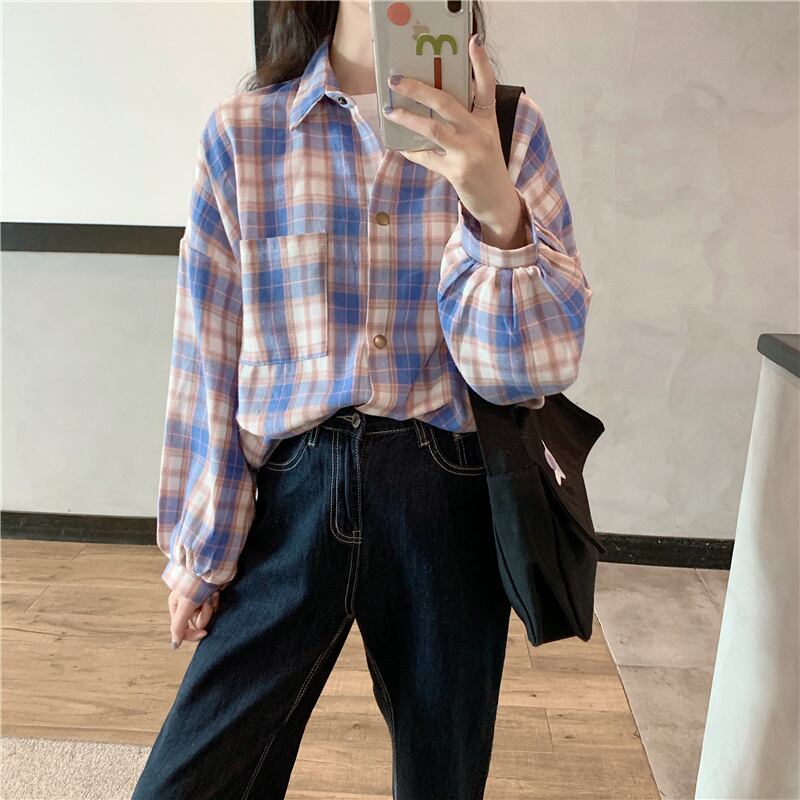✞ オータムスタンダードチェック柄シャツブラウス大人女子☆カジュアルスリーブ長袖ジャケット ロング レトロ 秋物 ✞ゴスロリ SM ミリ 甘ロリ クラロリ 和ロリ エレガント 黒ロリ 姫ロリ 華ロリ BB-BB512069379