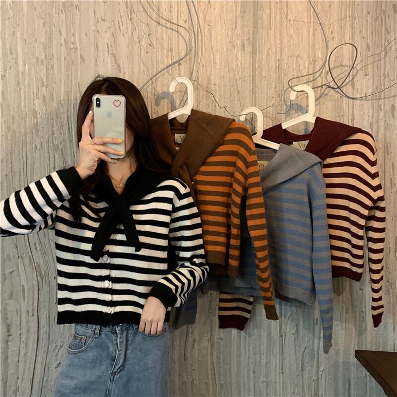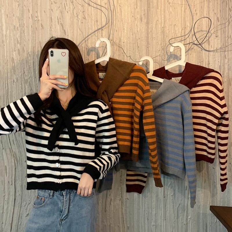 ✞ ネイビーソリッド カラースタンダードストライプニットセーター カーディガン ロング レトロ ソリッドカラー ✞ゴスロリ SM ミリ 甘ロリ クラロリ 和ロリ エレガント 黒ロリ 姫ロリ 華ロリ BB-BB9481845566