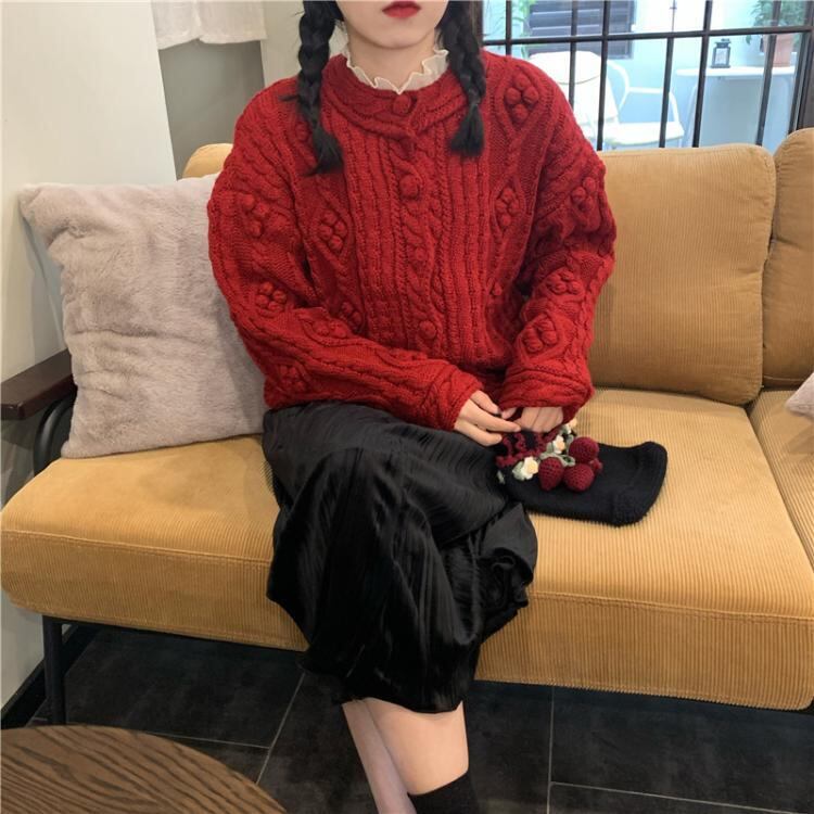 ✞ セーター コート レッドカーディガントップス ロング スウィート ガーリー ✞ゴスロリ SM ミリ 甘ロリ クラロリ 和ロリ エレガント 黒ロリ 姫ロリ 華ロリ BB-BB71658831608