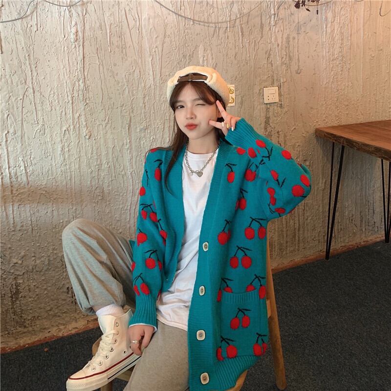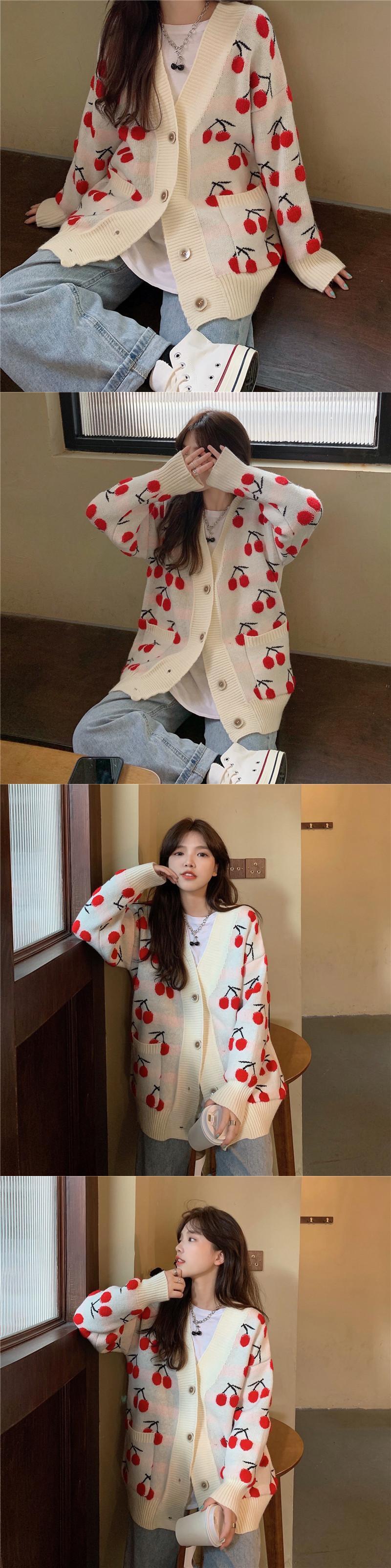 ✞さくらんぼVネックニットカーディガン セーター ロング スウィート ✞ゴスロリ SM ミリ 甘ロリ クラロリ 和ロリ エレガント 黒ロリ 姫ロリ 華ロリ BB-BB53251641676