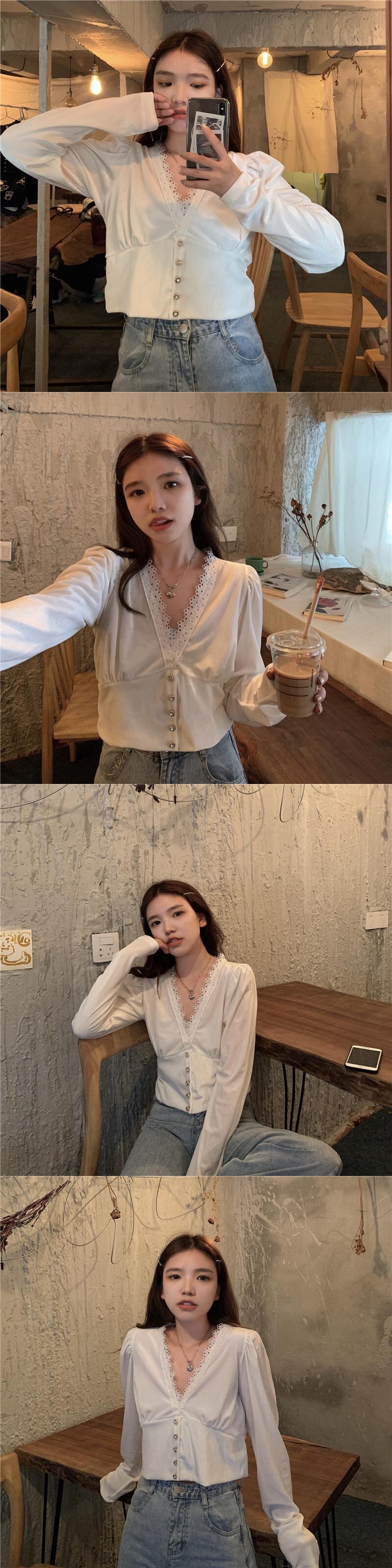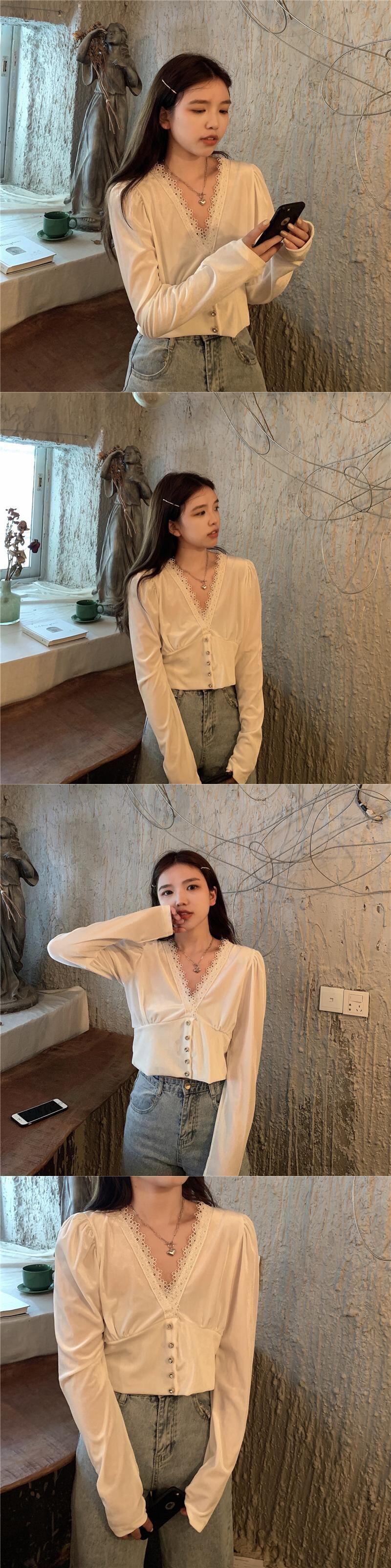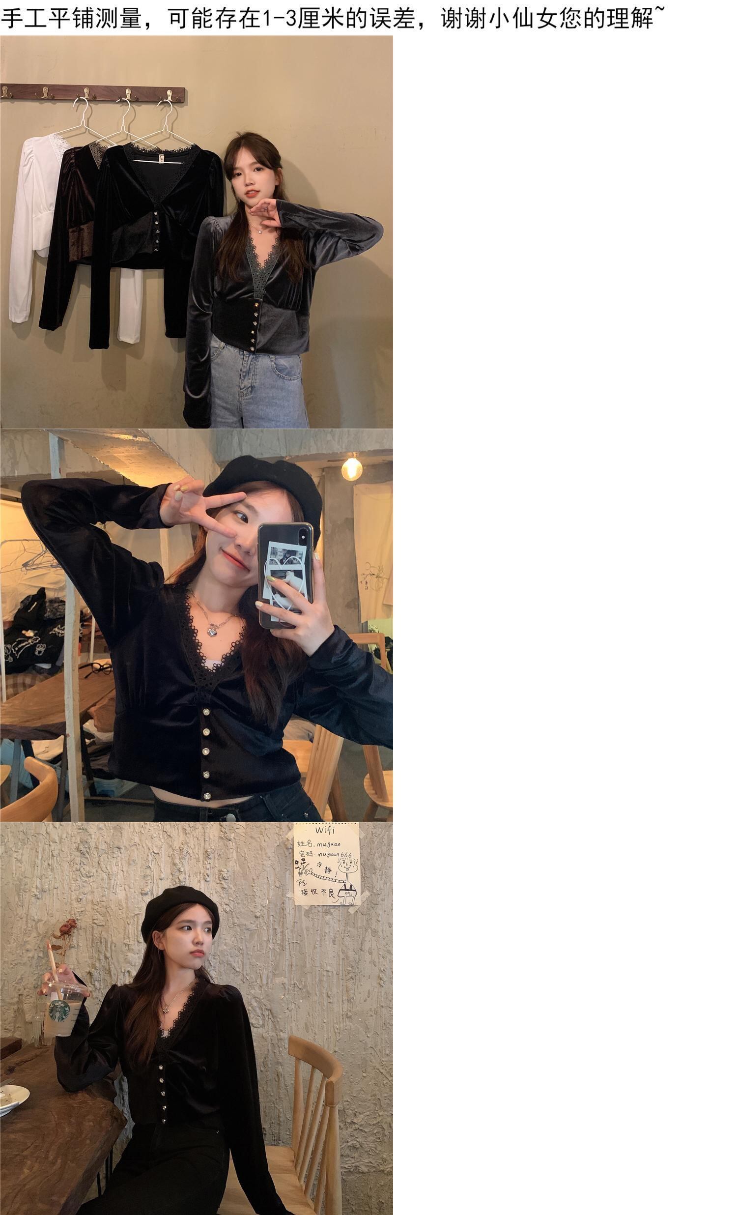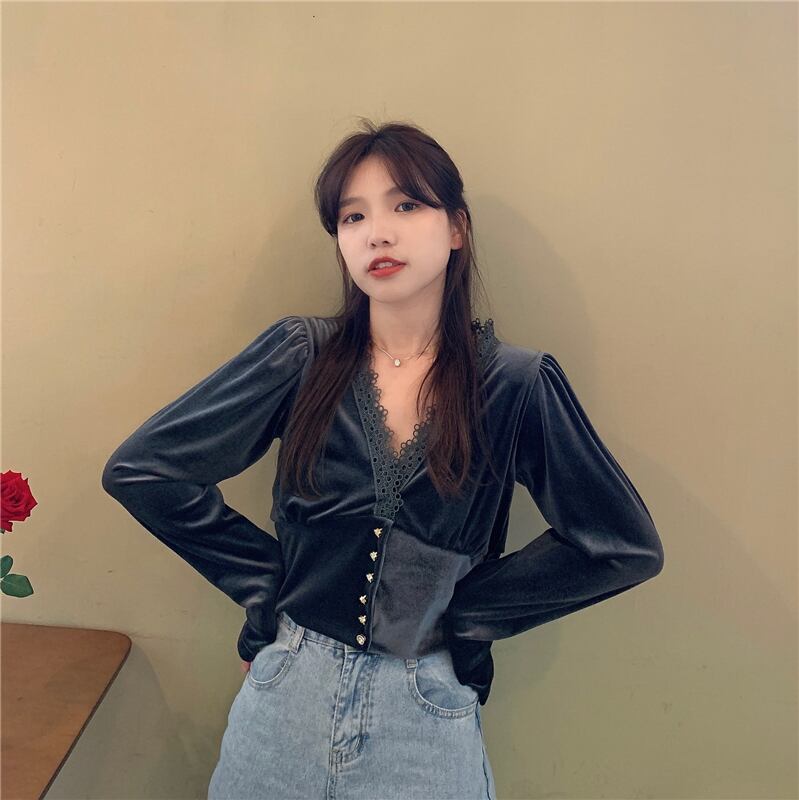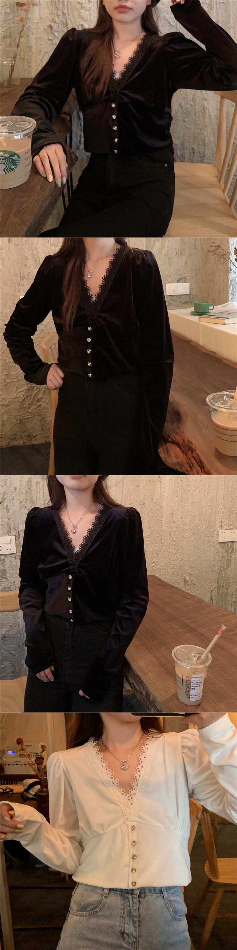 ✞ オータム♡Vネックレースシャツブラウスゴールドベルベットショートトップス 大人女子☆ ロング 秋物 ✞ゴスロリ SM ミリ 甘ロリ クラロリ 和ロリ エレガント 黒ロリ 姫ロリ 華ロリ BB-BB74773930860