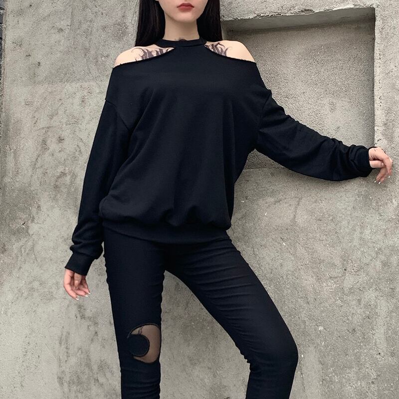 ✞✝✞ ラウンドネックセーター 大人女子☆ブラックストラップレストップス ロング ✞✝✞ ゴスロリ SM ミリ 甘ロリ クラロリ 和ロリ エレガント 黒ロリ 姫ロリ 華ロリ AA-AA33755864203