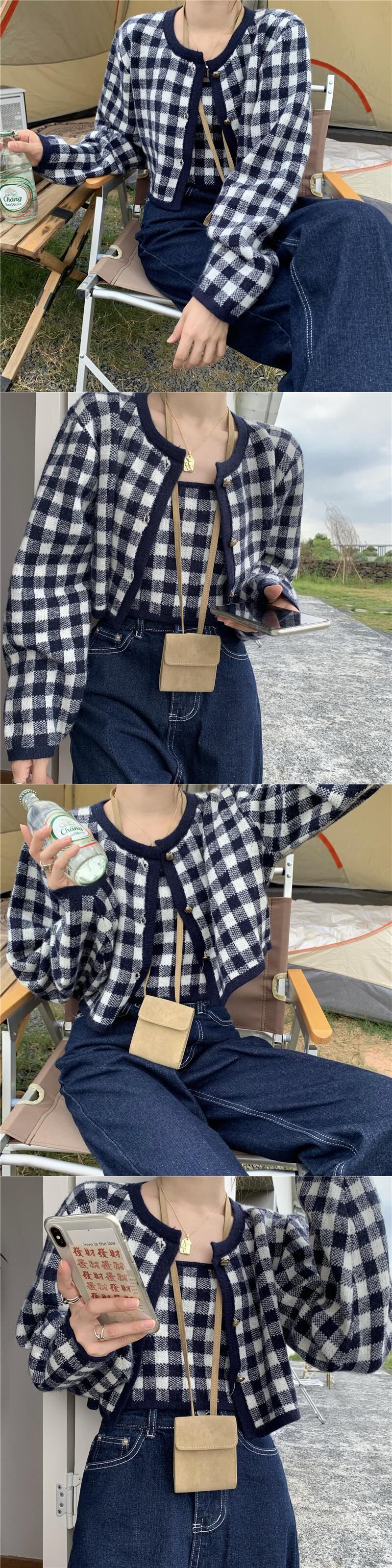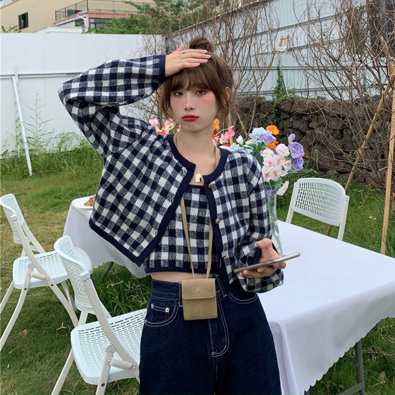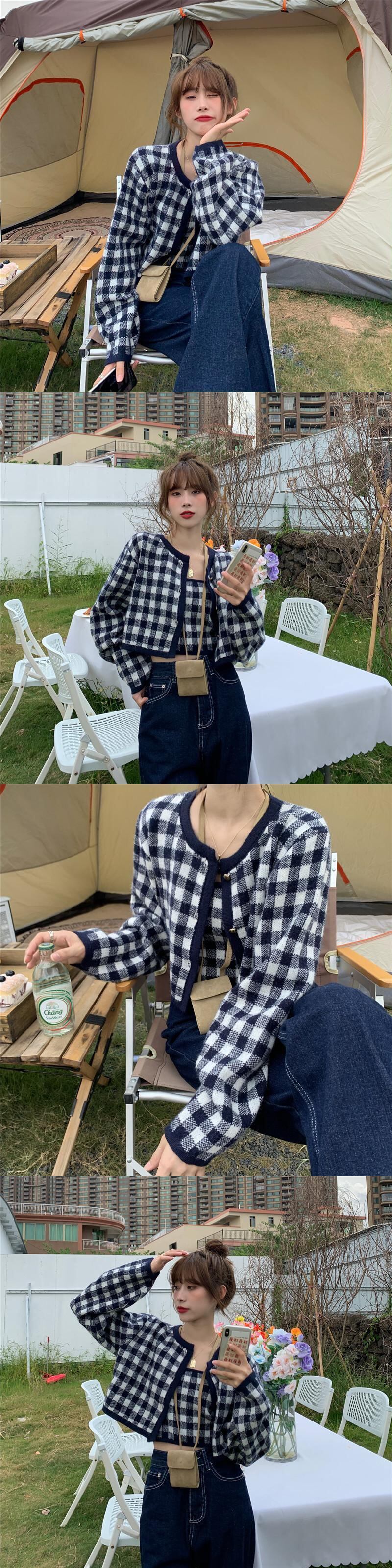 ✞ スタンダードカラーチェック柄トップス ショートニットセーター カーディガンジャケット ♡ レトロ ✞ゴスロリ SM ミリ 甘ロリ クラロリ 和ロリ エレガント 黒ロリ 姫ロリ 華ロリ BB-BB76360112367