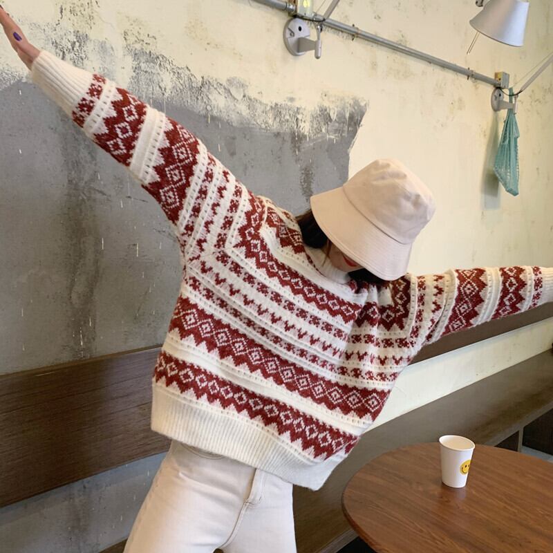 ✞ セーター 大人女子☆カラージャカードラウンドネックプルオーバー トップス ロング ✞ゴスロリ SM ミリ 甘ロリ クラロリ 和ロリ エレガント 黒ロリ 姫ロリ 華ロリ BB-BB5063763647
