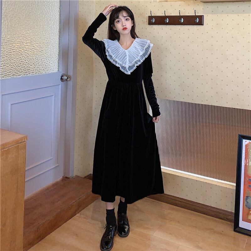 ✞ Vネックカラーメッシュレースベルベットハイウェストスリム ロング ステッチ ✞ゴスロリ SM ミリ 甘ロリ クラロリ 和ロリ エレガント 黒ロリ 姫ロリ 華ロリ BB-BB98141891176