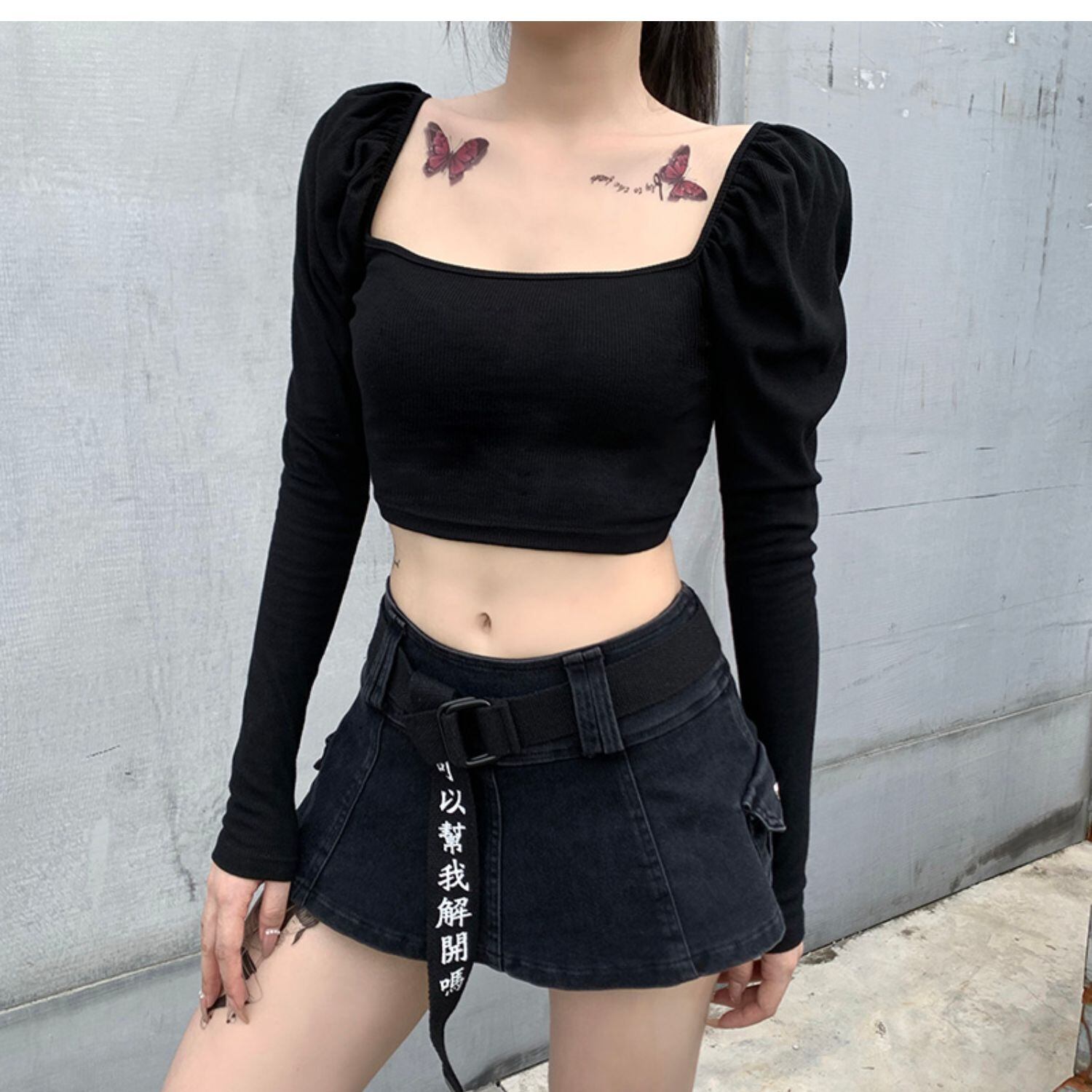 ✞✝✞ ホルタースリーブトップス ショートTシャツ ロング♥カワイイ♥ レース 長袖 スクウェア ✞✝✞ ゴスロリ SM ミリ 甘ロリ クラロリ 和ロリ エレガント 黒ロリ 姫ロリ 華ロリ AA-AA79915068049
