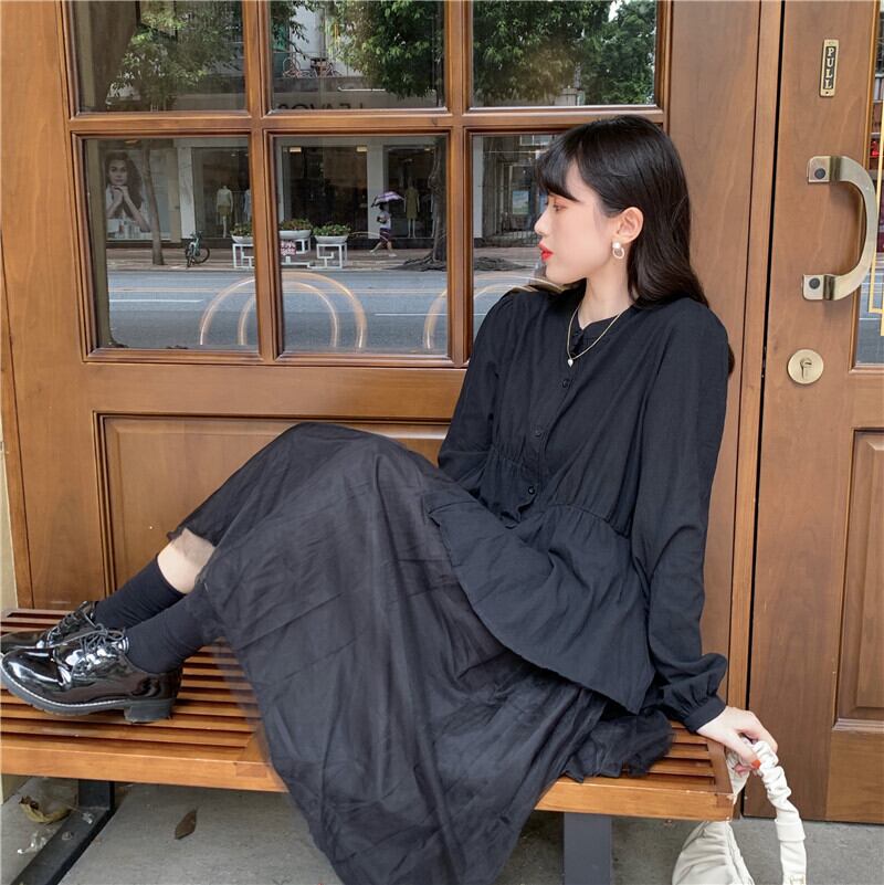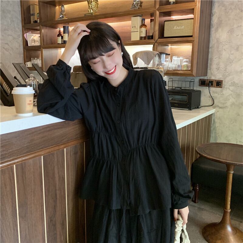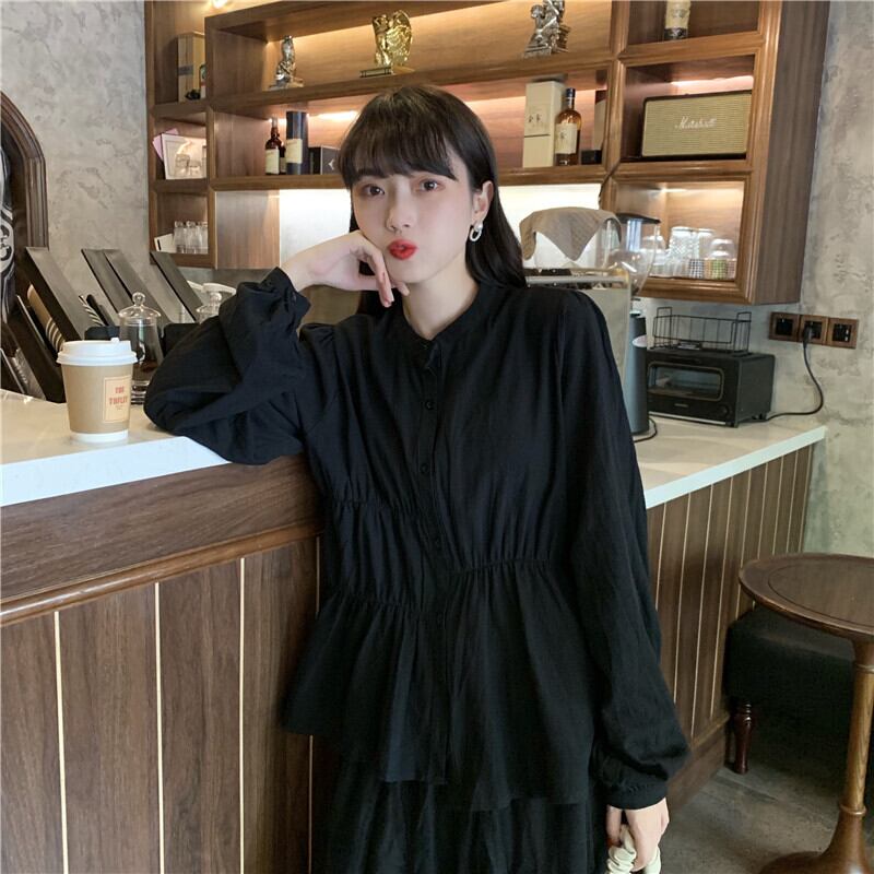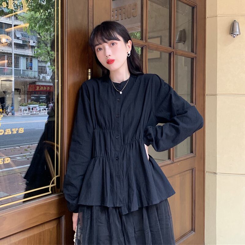 ✞ スタンダードダークラウンドネック長袖スリーブプリーツシャツブラウス ロング レトロ ✞ゴスロリ SM ミリ 甘ロリ クラロリ 和ロリ エレガント 黒ロリ 姫ロリ 華ロリ BB-BB33243552968