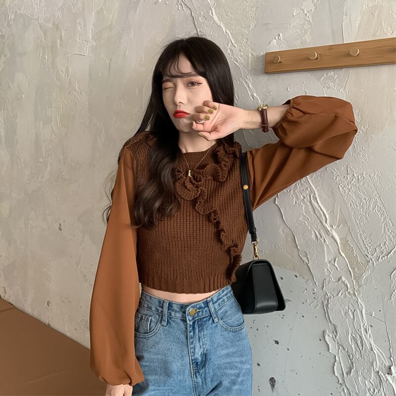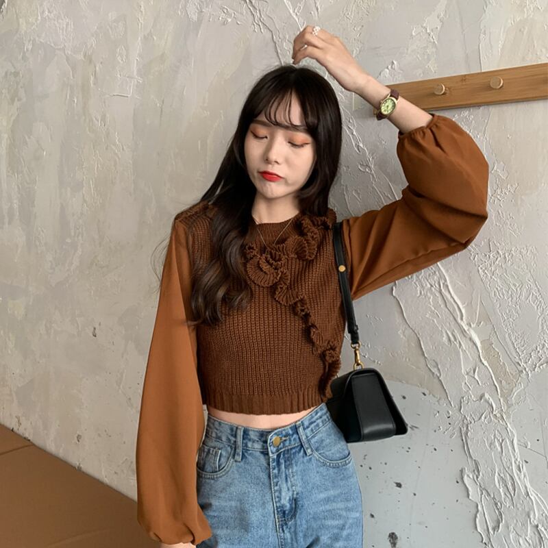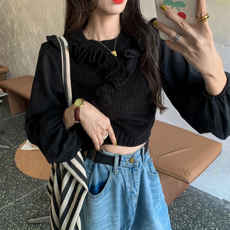 ✞ レースプルオーバー ラウンドネックセーター スリーブクロップドトップス 大人女子☆ スウィート ステッチ ✞ゴスロリ SM ミリ 甘ロリ クラロリ 和ロリ エレガント 黒ロリ 姫ロリ 華ロリ BB-BB6647982941