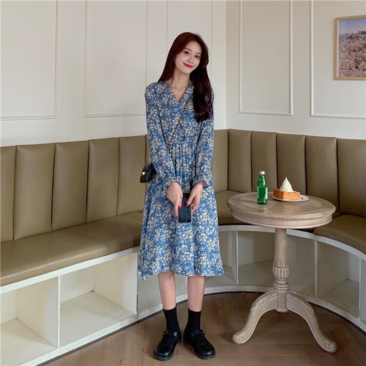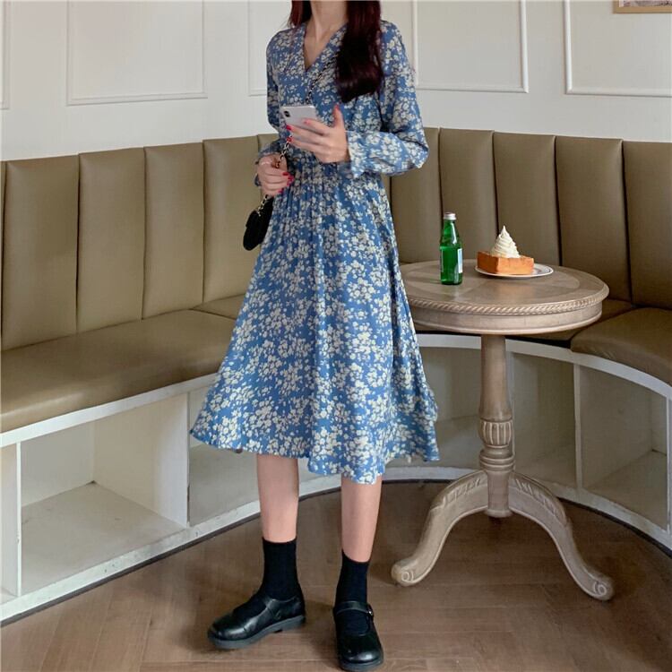 ✞ 花柄Vネック★♥カワイイ♥スタンダードシフォンスカート レトロ スウィート ✞ゴスロリ SM ミリ 甘ロリ クラロリ 和ロリ エレガント 黒ロリ 姫ロリ 華ロリ BB-BB14646354038