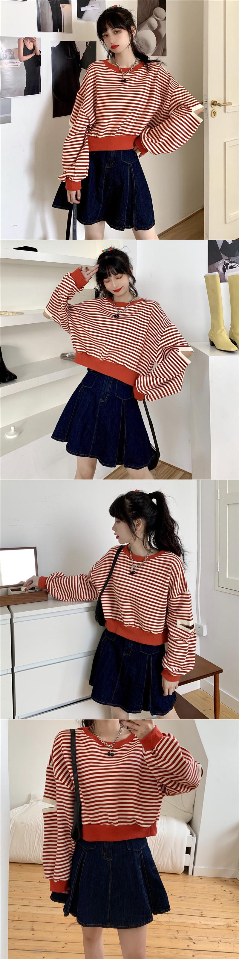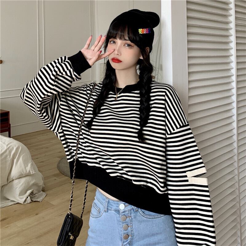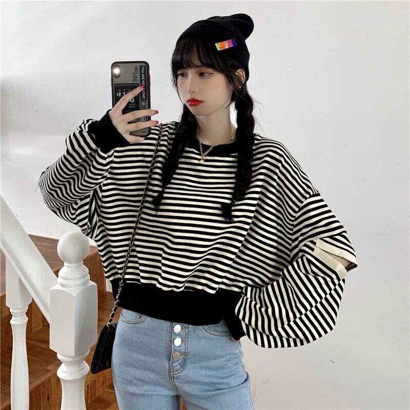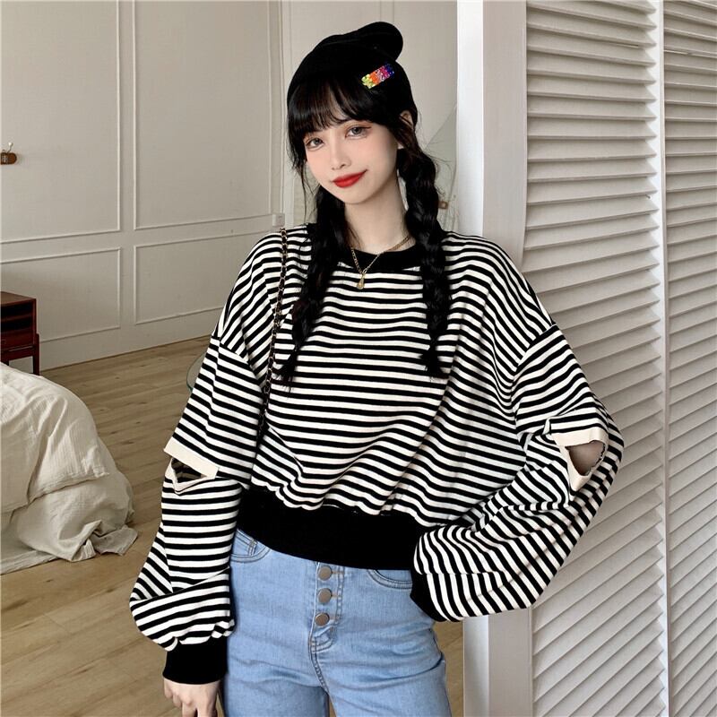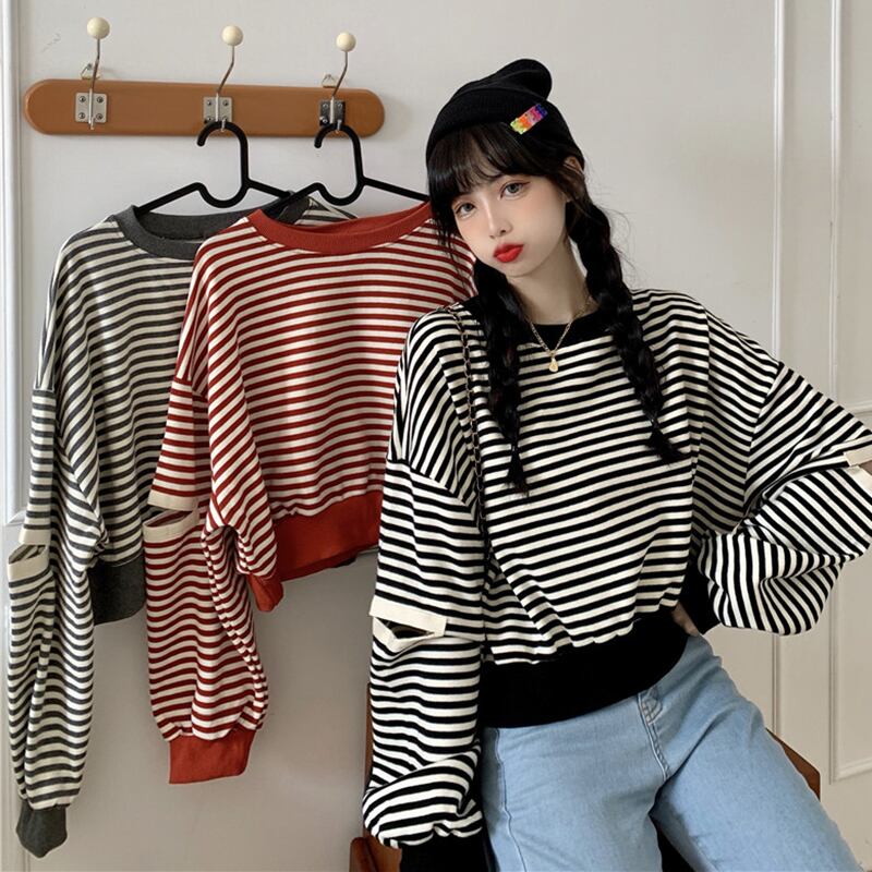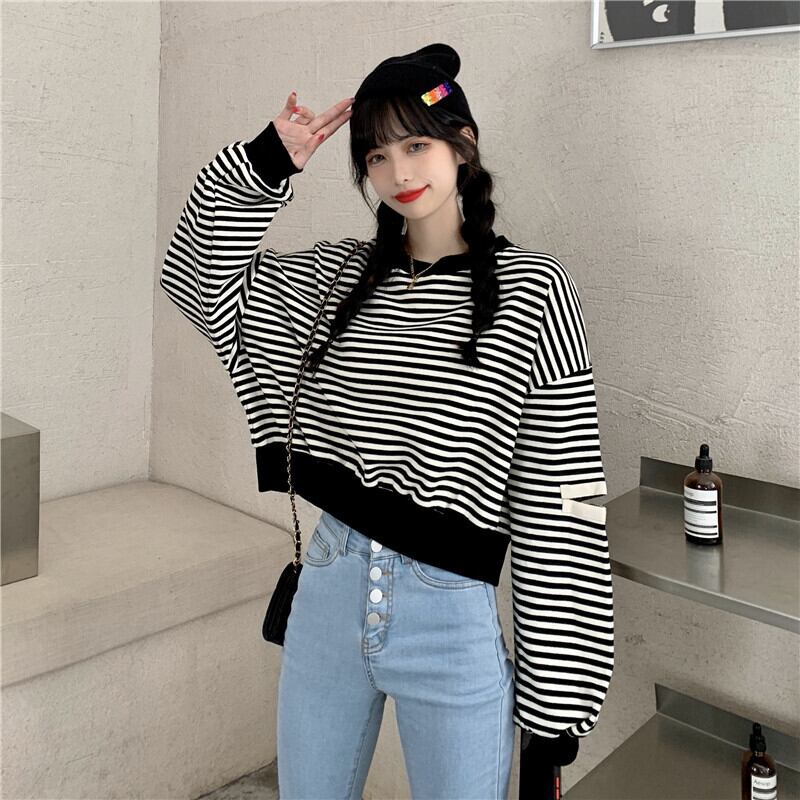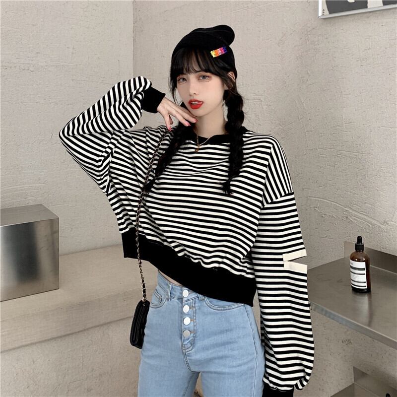 ✞ スウェット 大人女子☆ショートストライプカジュアルトップス ✞ゴスロリ SM ミリ 甘ロリ クラロリ 和ロリ エレガント 黒ロリ 姫ロリ 華ロリ BB-BB56187226548