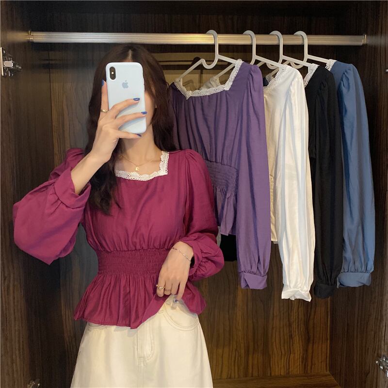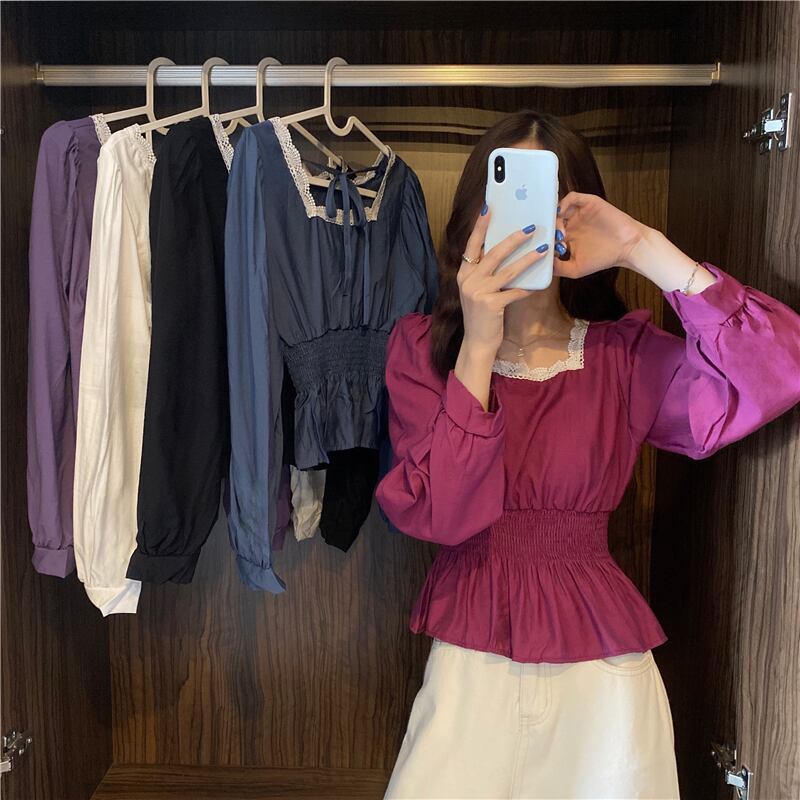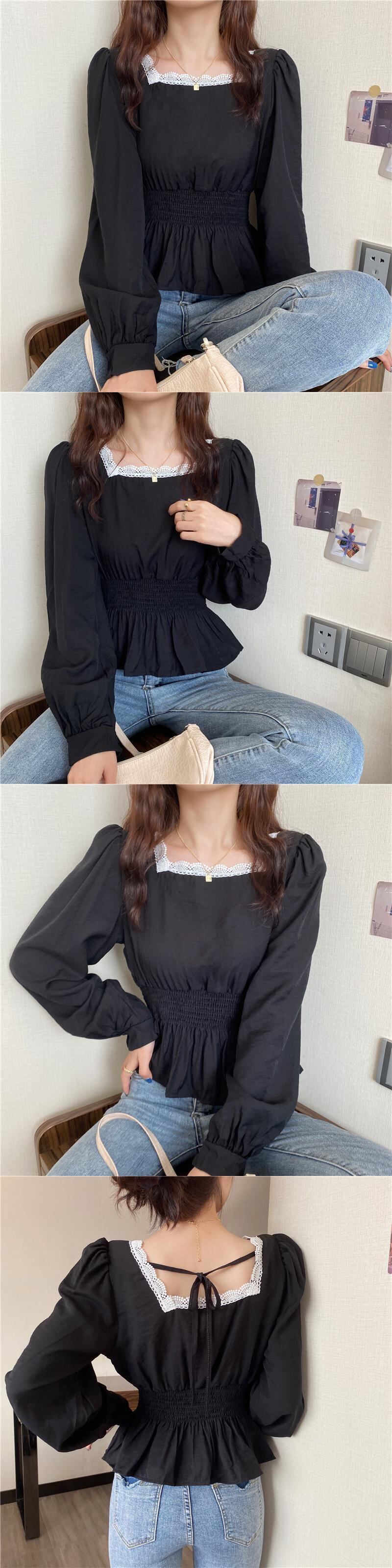 ✞ レースシャツブラウスバック★♡長袖スリーブ ロング スウィート スクウェア ステッチ ✞ゴスロリ SM ミリ 甘ロリ クラロリ 和ロリ エレガント 黒ロリ 姫ロリ 華ロリ BB-BB95533151221