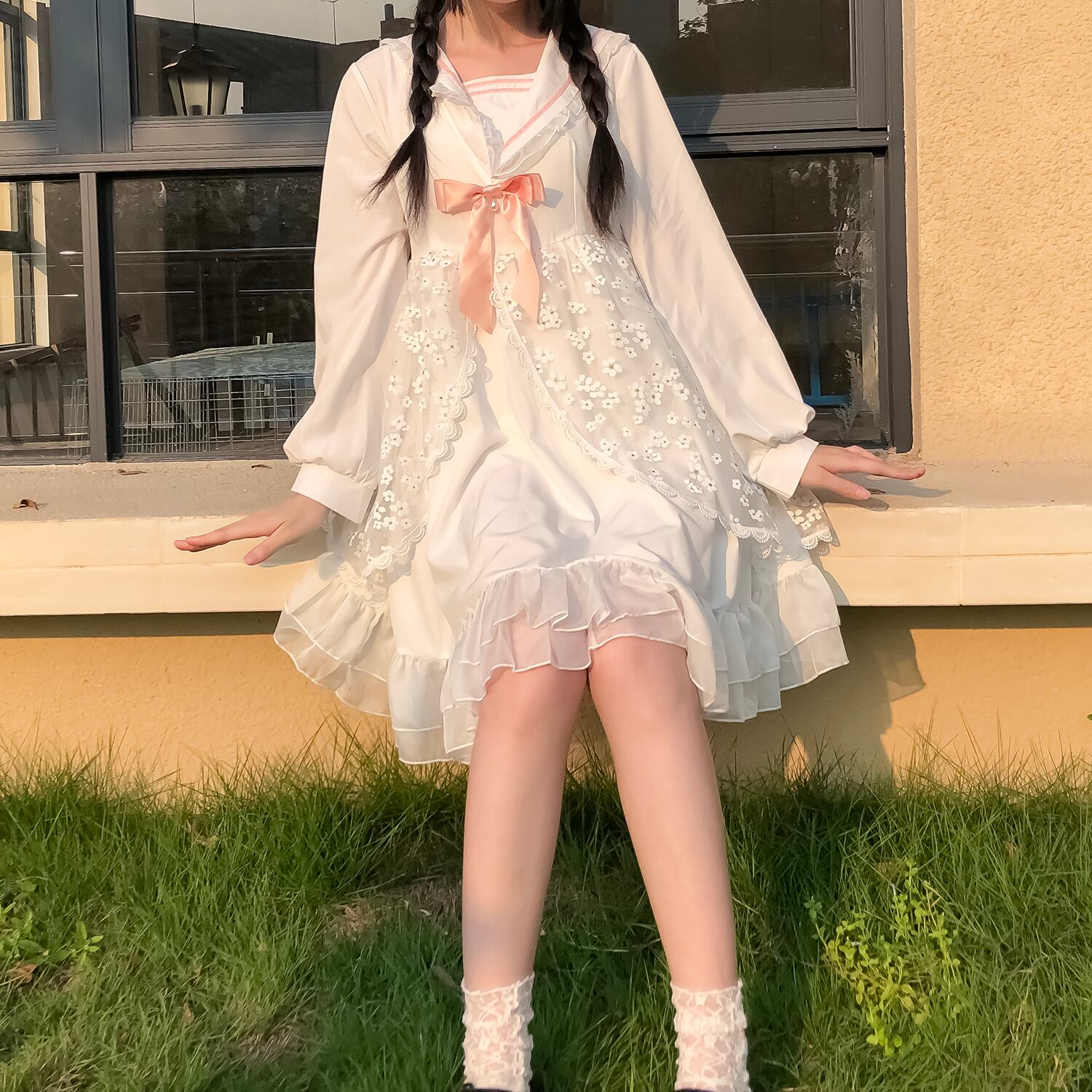 ✞ ネイビー♡大人女子☆メッシュ白スカート ロング ホワイト スウィート ステッチ ✞ゴスロリ SM ミリ 甘ロリ クラロリ 和ロリ エレガント 黒ロリ 姫ロリ 華ロリ BB-BB14350158426