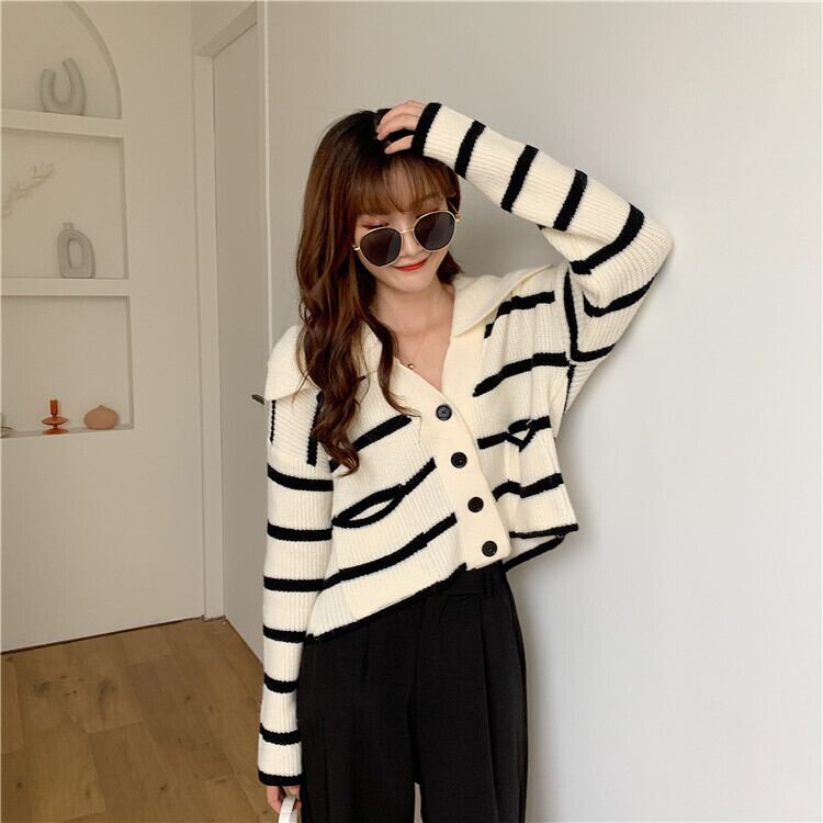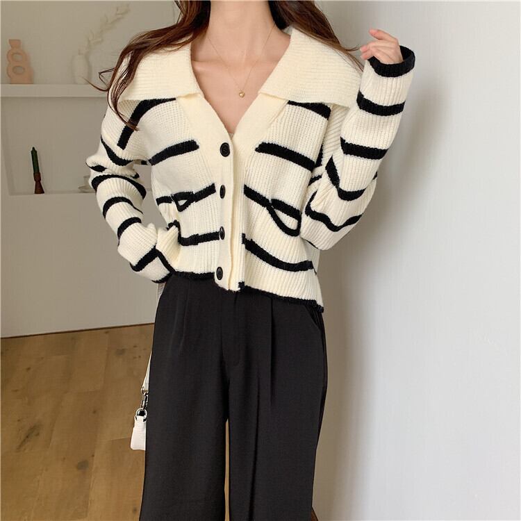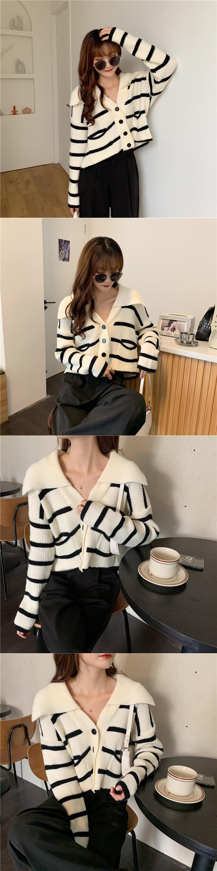 ✞ スタンダードストライプニットカーディガン♥カワイイ♥Vネックセーター コート ジャケット 大人女子☆ レッド レトロ ✞ゴスロリ SM ミリ 甘ロリ クラロリ 和ロリ エレガント 黒ロリ 姫ロリ 華ロリ BB-BB63642596559