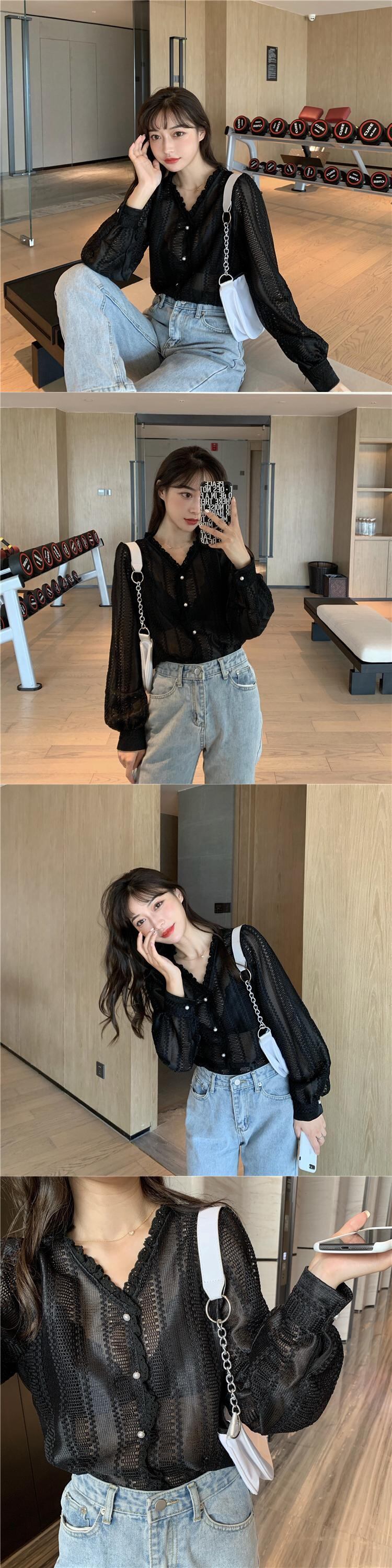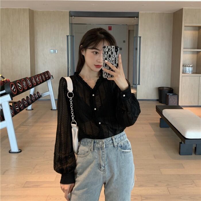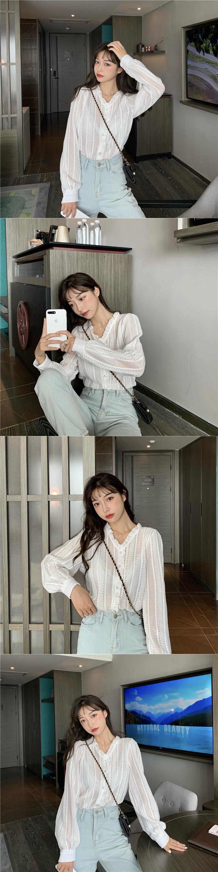 ✞ Vネックブラウス スタンダード花柄白スリーブ長袖シャツブラウス大人女子☆ ロング ホワイト レトロ スウィート フラワーデザイン ✞ゴスロリ SM ミリ 甘ロリ クラロリ 和ロリ エレガント 黒ロリ 姫ロリ 華ロリ BB-BB75214731067