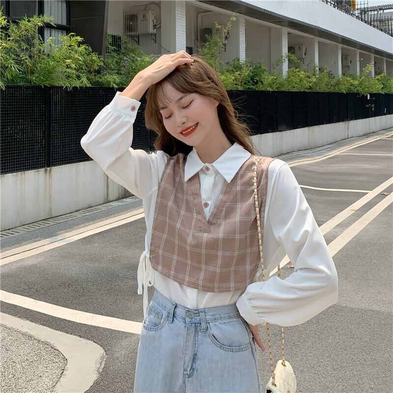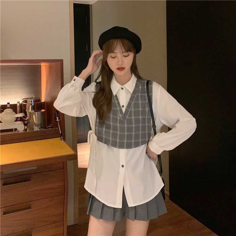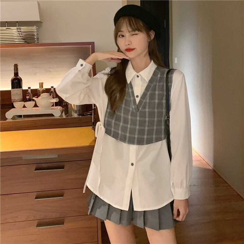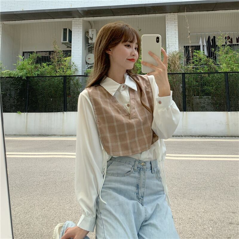 ✞ スタンダードチェック柄シャツブラウス♡ ロング レトロ ✞ゴスロリ SM ミリ 甘ロリ クラロリ 和ロリ エレガント 黒ロリ 姫ロリ 華ロリ BB-BB20488629773