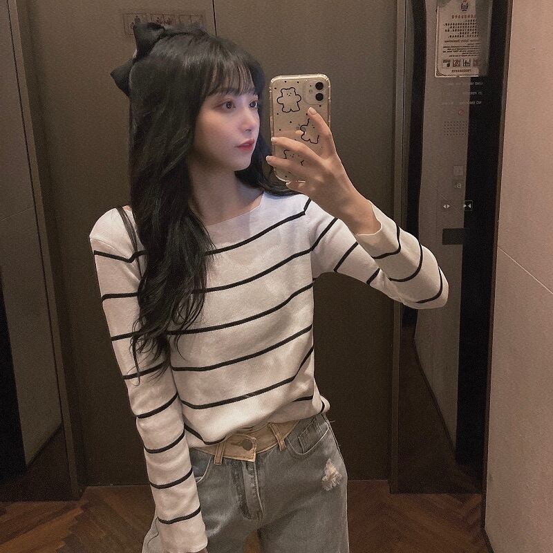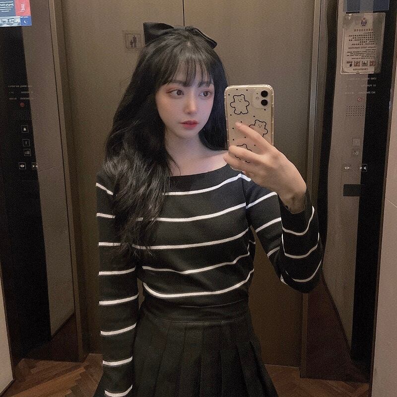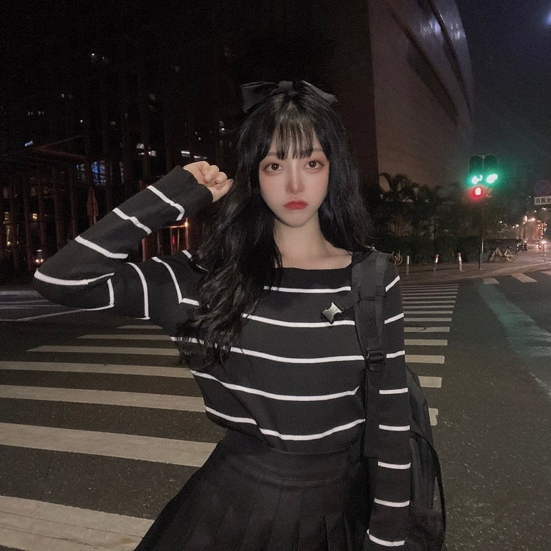✞ シャツブラウスストライプスリムニットトップス ロング スクウェア ✞ゴスロリ SM ミリ 甘ロリ クラロリ 和ロリ エレガント 黒ロリ 姫ロリ 華ロリ BB-BB84582585432
